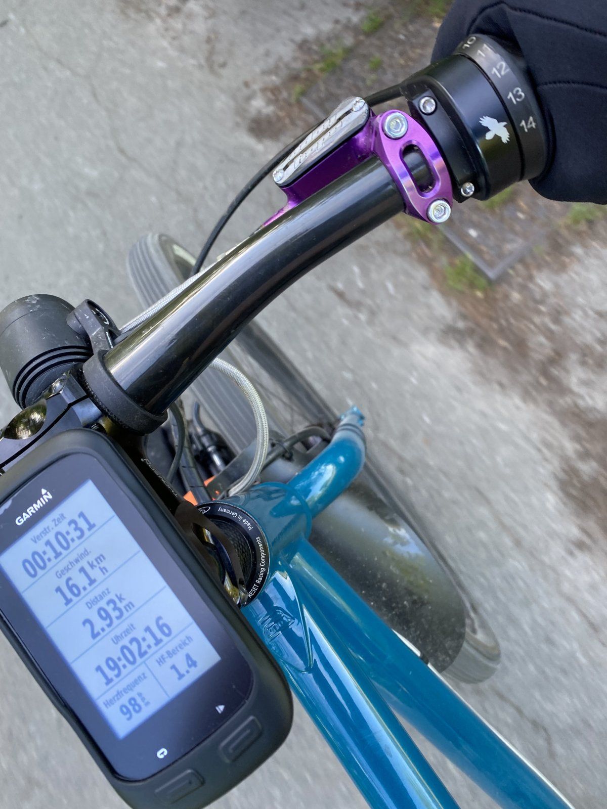 Die Teststrecke und max. Trittfrequenz ( ich würde sagen im Gang 12 kurz bevor ich auf 14 schaltete).