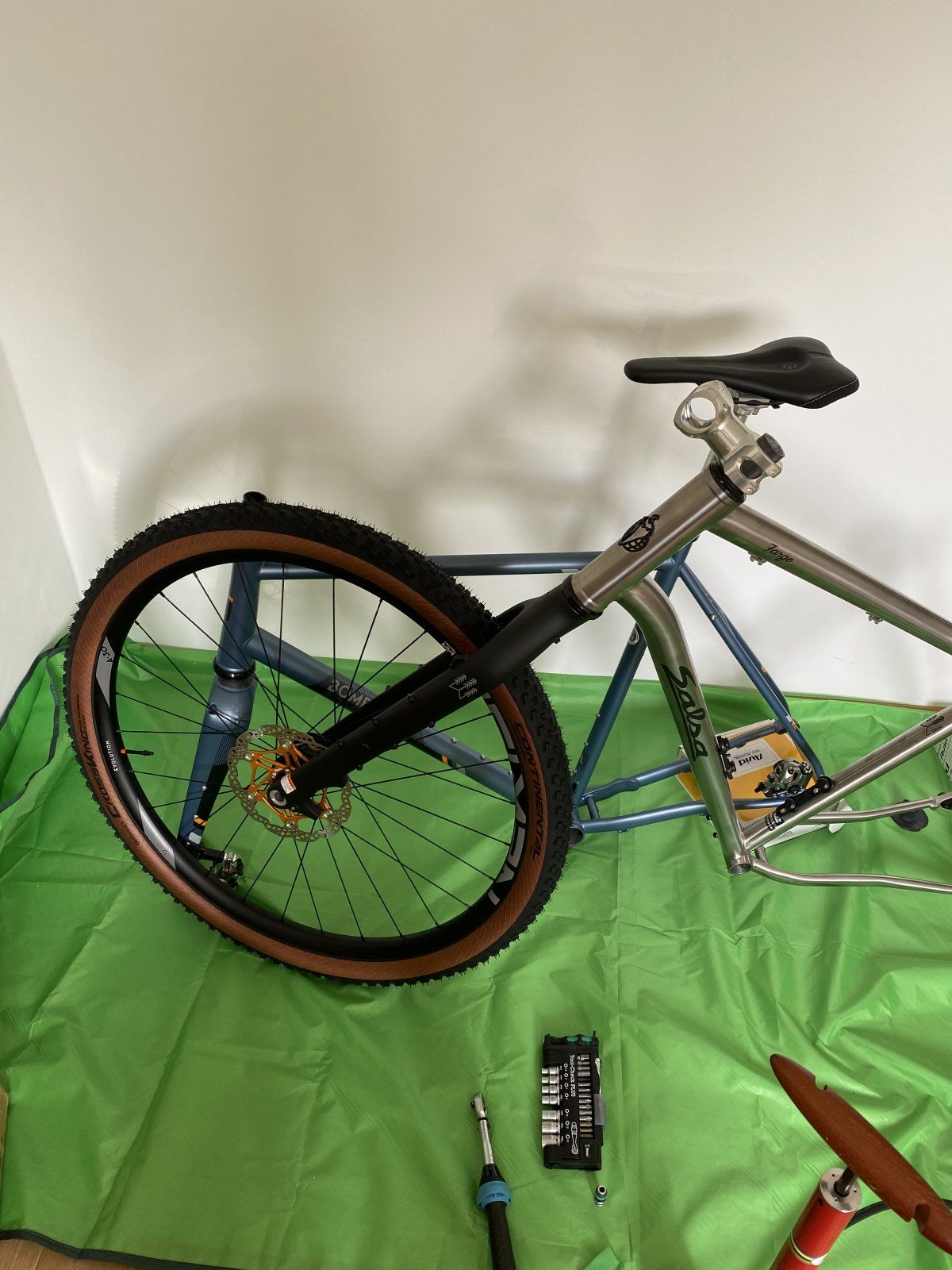 Fargo mit 38x16 (mit einer Race Face Kurbel aus meinem Stormchaser, Kettenlinie suptoptimal, aber geht)