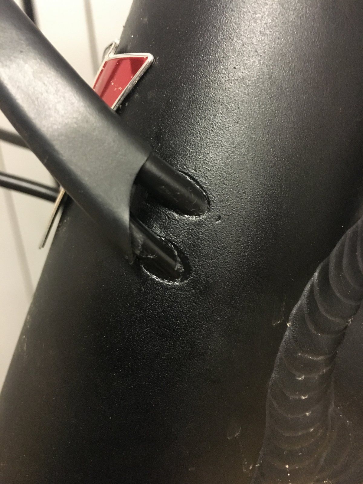 Bild ist schon ok.viel Möglichkeiten gibt's ja nicht,grösser feilen und passende weiche Gummistopfen einsetzen wodurch die Züge laufen.Alles andere ist mit Klebeband ect.ist Blödsinn.Was ich mich Frage,ist was LV sich dabei gedacht hat,das muss doch jedem Konstrukteur in der Seele weh tun zug Verlegung über ungeschützten scharfkantige Stellen?Da hat LV eindeutig gepennt und ein nicht ausgereiftes Produkt in den Markt für viel Geld geschmissen.Man Stelle sich vor ein Biker bemerkt dies nicht ,und die Bremsleitung macht Schicht in der Abfahrt.Da muss LV sofort reagieren meiner Meinung nach ,sonst kann es böse enden.Sowas muss doch beim Testen des Bikes bemerkt werden von LV ,versteh ich nicht.