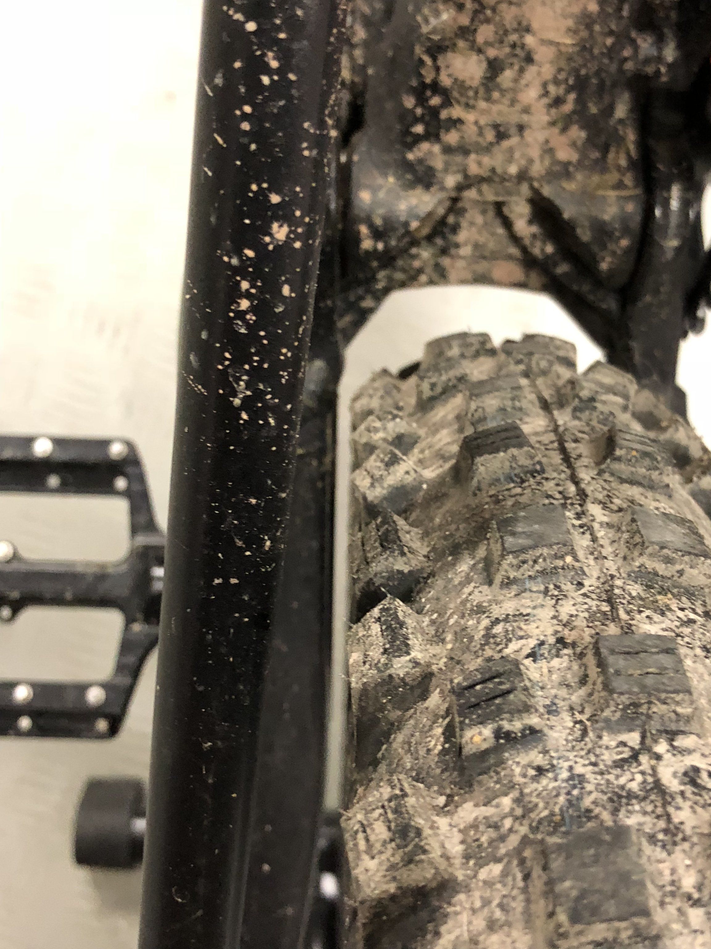 Kannst Du mal zeigen, wieviel Platz noch rechts und links (wobei eher rechts interessant, weil da bei mir zumindest weniger Platz zu sein scheint) an den Kettenstreben ist bei 2.8er Reifen?