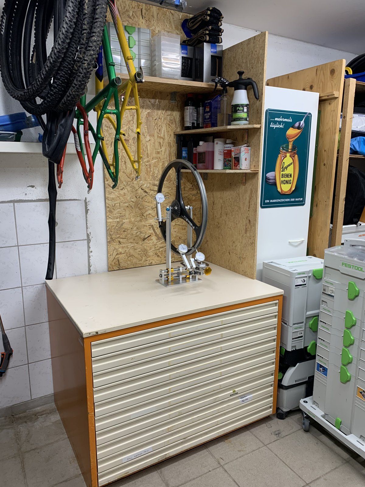 Bei mehreren Trispokes-Rädern hilft der Zentirierständer die Felge mit dem geringsten Höhen- und/oder Seitenschlag rauszusuchen, mehr leider auch nicht. :bier: