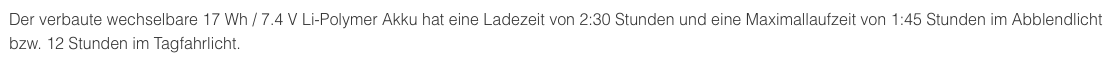 - 900 Lumen möglich mit den angegebenen 1:45h, wahrscheinlich sogar bei 2h