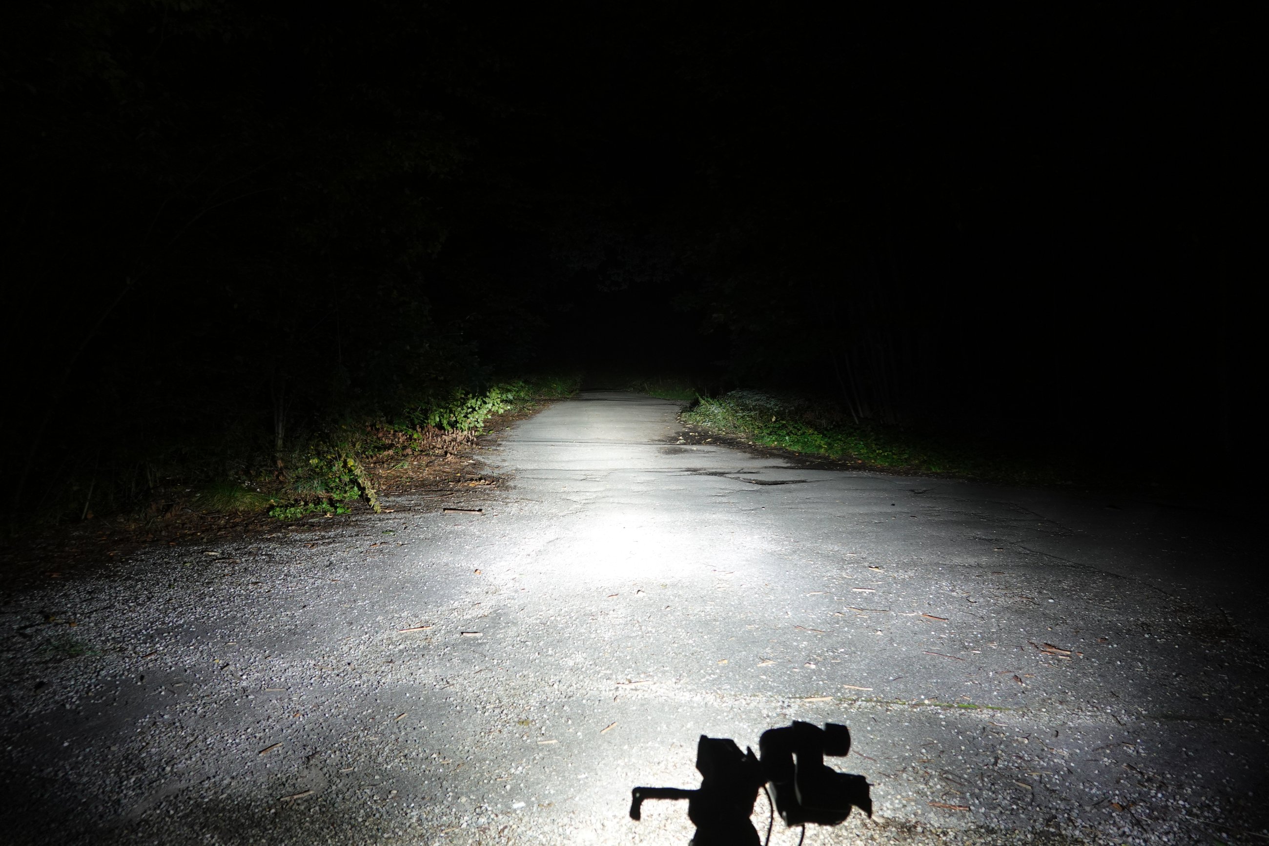 Das hat genau den Nachteil, das es praktisch unmöglich ist, um mit so einer Lampe am Lenker auf richtigen Trails mit Höhen und Tiefen, unbekannte tiefe Löcher und Senken auszuleuchten. Sogar dickere Äste oder liegende Baumstämme werfen dahinter einen völlig uneinsehbaren, langen und gefährlichen Lichtschatten. In so einem Lichtschatten kann wer weiss welches Risiko versteckt sein.