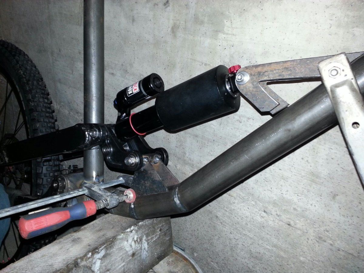 Der Bauch im Unterrohr ist reine Speilerei. Mir gefällt diese Giant-Specialized-Biegung. Daher musste die untere Aufnahme hoch werden. Optisch gefällt mir das aber so wie es ist.