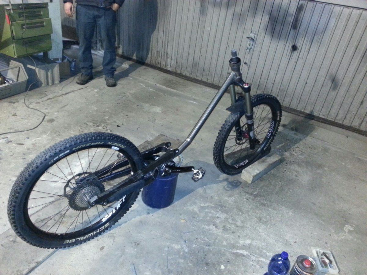 )Sieht robust aus!Anhang anzeigen 546451 Anhang anzeigen 546453 Anhang anzeigen 546454 Anhang anzeigen 546458 Anhang anzeigen 546459 Anhang anzeigen 546451 Anhang anzeigen 546453 Anhang anzeigen 546454 Hier mal meine neuste Kreation. Der Rahmen ist 2,1 kg leichter als der Vorgänger (Wandstärken um 25-40% reduziert). Dazu einen tieferes Tretlager, ein kürzeres Sitzrohr und ein geringeres Übersetzungsverhältnis auf den Dämpfer.