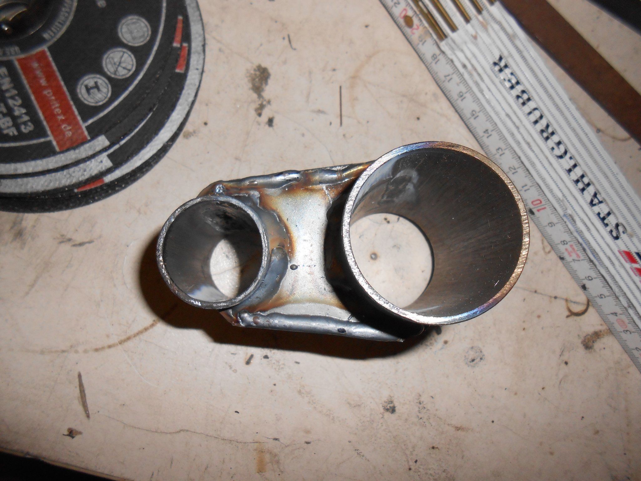 Das Steuerrohr besteht aus 5 Teilen. Für den riesigen Superspin-Satz brauche ich oben und unten ein Pressmaß von 57mm di. Wandstärke ist 4mm. Da das Steuerrohr brutal schwer wird wenn ich das durchgehend so dick mache, ist in der Mitte ein 1mm CrMo Rohr drin. Hast vollkommen recht, ist aus Gewichtsgründen. Beim nächsten Rahmen kommt aber auch ein anderer Steuersatz rein damit ich von den riesen Maßen und Massen wegkomme.
