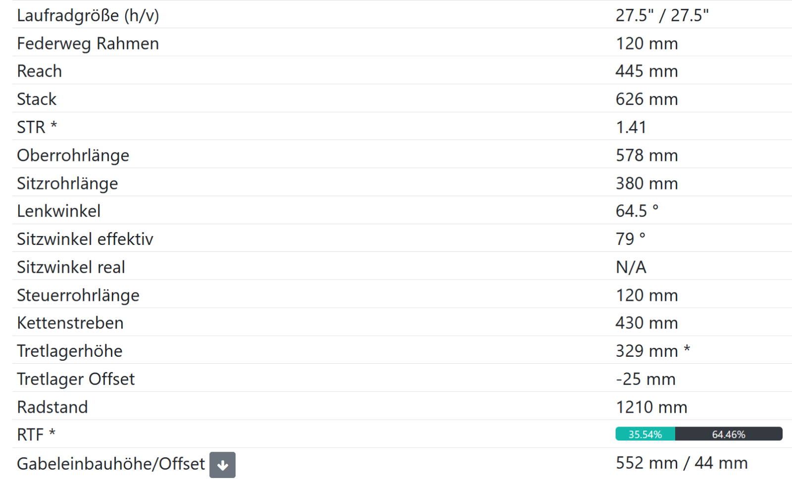 Edit: wobei zu erwähnen wäre, dass in das Rad auch ein 29" LRS reinpasst. Daher die "lange" Gabel und der hohe Stack für 27,5" Verhältnisse.