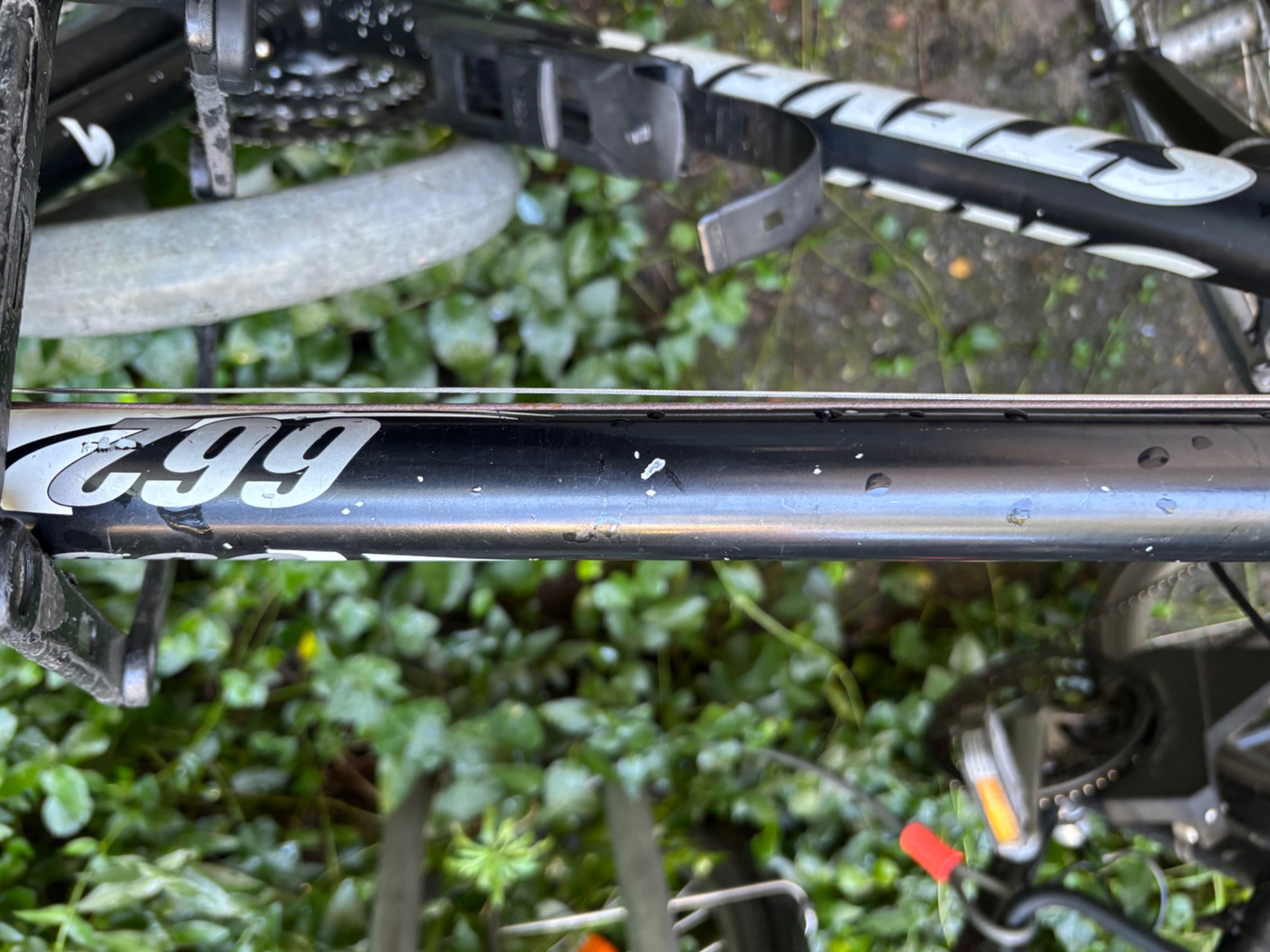 Der Rahmen hat nach jahrelanger Misshandlung mit einem Bordo-Schloss unzählige Stellen, an denen der Lack ab ist. Siehe Fotos.