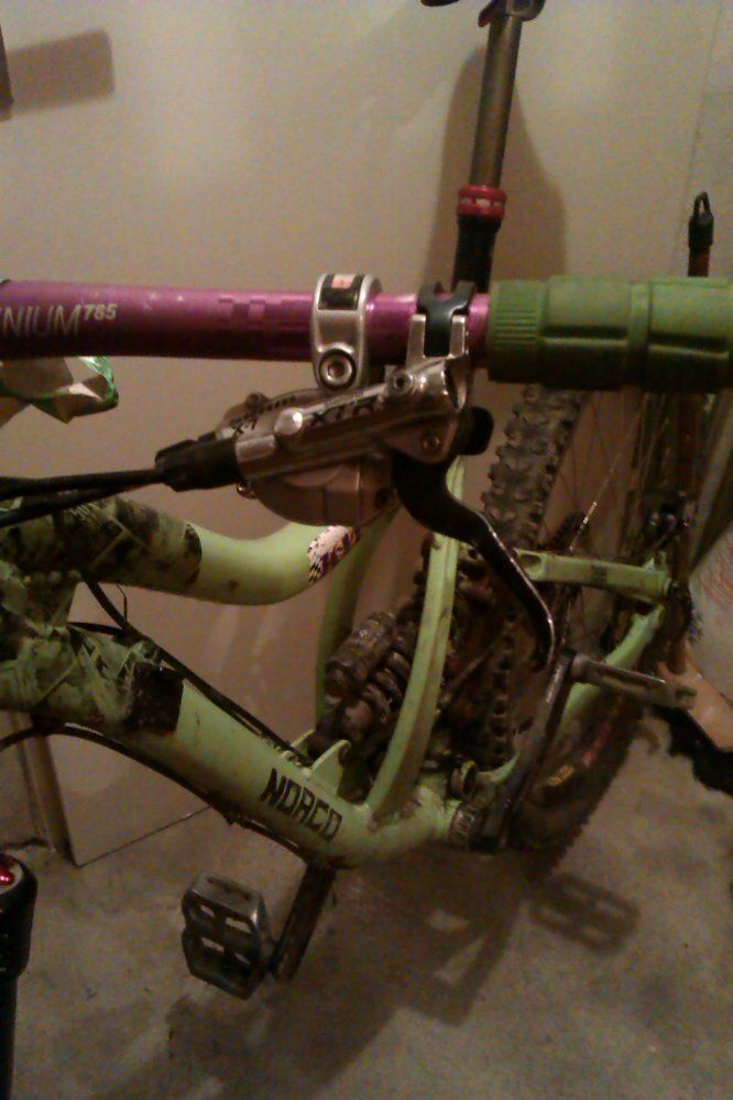 Kurzer hinweis für die die das auch machen wollen. Shimano-Saint Hebel kommt ohne Schraube und Knickschutz. Die sind beim Bremsleitungssatz zusammen mit der Olive dabei.