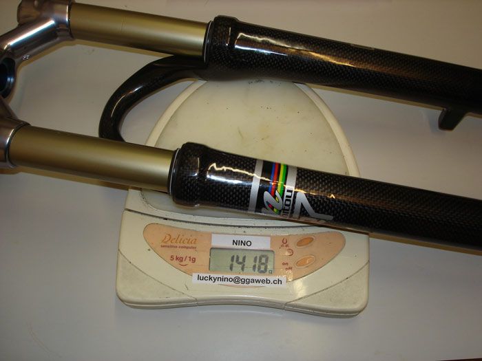 Gewicht meiner Gabel abgelängt auf 22cm 1360gr. Für ne supersteife 100mm Gabel gar nicht so schlecht.