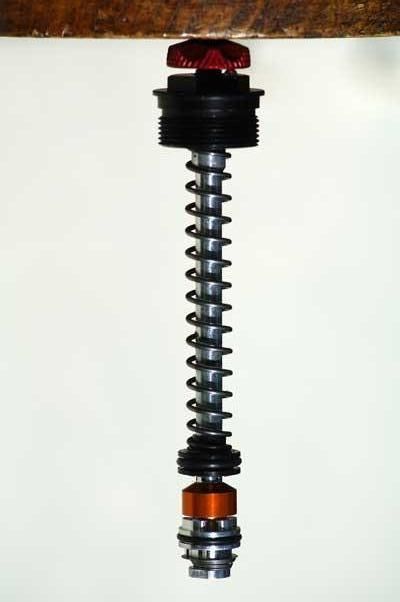 Das stimmt auch nicht. Die Durchlaßöffnungen sind keineswegs zu groß. Im Gegenteil ist der Querschnitt sogar geringer als bei mancher Konkurrenzgabel. Der Kolben ist wirklich eine klassische Highspeedstufe wie aus dem Lehrbuch, bloß ohne Stahlfeder oder Shims, sondern mit einer Luftfeder. That´s it.Das hat mit High Speed nichts zu tun, eine High Speed Druckstufe ist eine Dämpfung, die bei sehr schnellen Schlägen den Ölfluss limitiert und genau das macht das SPV Ventil nicht, da die Durchlassöffnungen viel zu gross sind, als dass sie limitierend wirken würden bei erreichbaren Einfedergeschwindigkeiten.