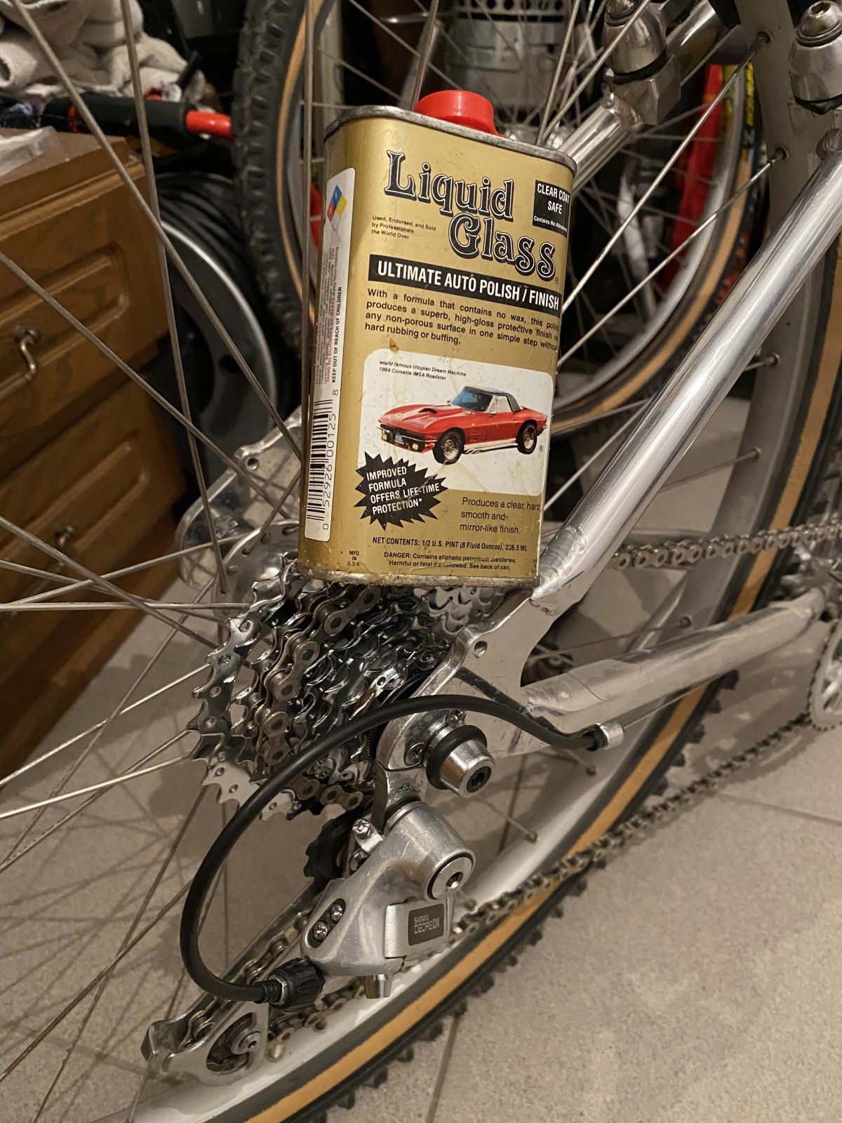 Nur das Innenlager ließ sich rechts trotz aller Tricks nicht lösen, mehrere Tage einsuppen, erwärmen, in Schraubstock und Rahmen als Hebel... Keine Chance. Dank Konuslager konnte man es ja aber von links überholen und wieder einstellen, nur passt auf 127mm nicht viel. Hatte aber noch ne Exage500LX Kurbel, die sich bissl polieren ließ (die 200LX ist leider lackiert) und zufällig auch diese Lagerbreite nutzt. Ansonsten hätte ich nämlich ne schöne Sugino Impel verbaut. Auf der 500er Kurbel sind jetzt die Blätter der 200er und die sind viel zu groß, das ist ne Straßenübersetzung. Da muss ich noch ne Lösung finden.