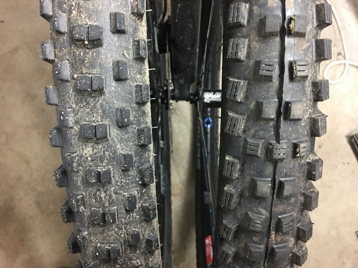 Hatte kurzzeitig den MM SG Trailstar am Vorderrad (35mm Maulweite) aber da war mir der Schwalbe etwas zu eckig (62mm Karkasse, 59,5mm Stollen) und jetzt ist der Claw XL wieder drauf. Ich liebe ihn!:love: Den Claw.;)