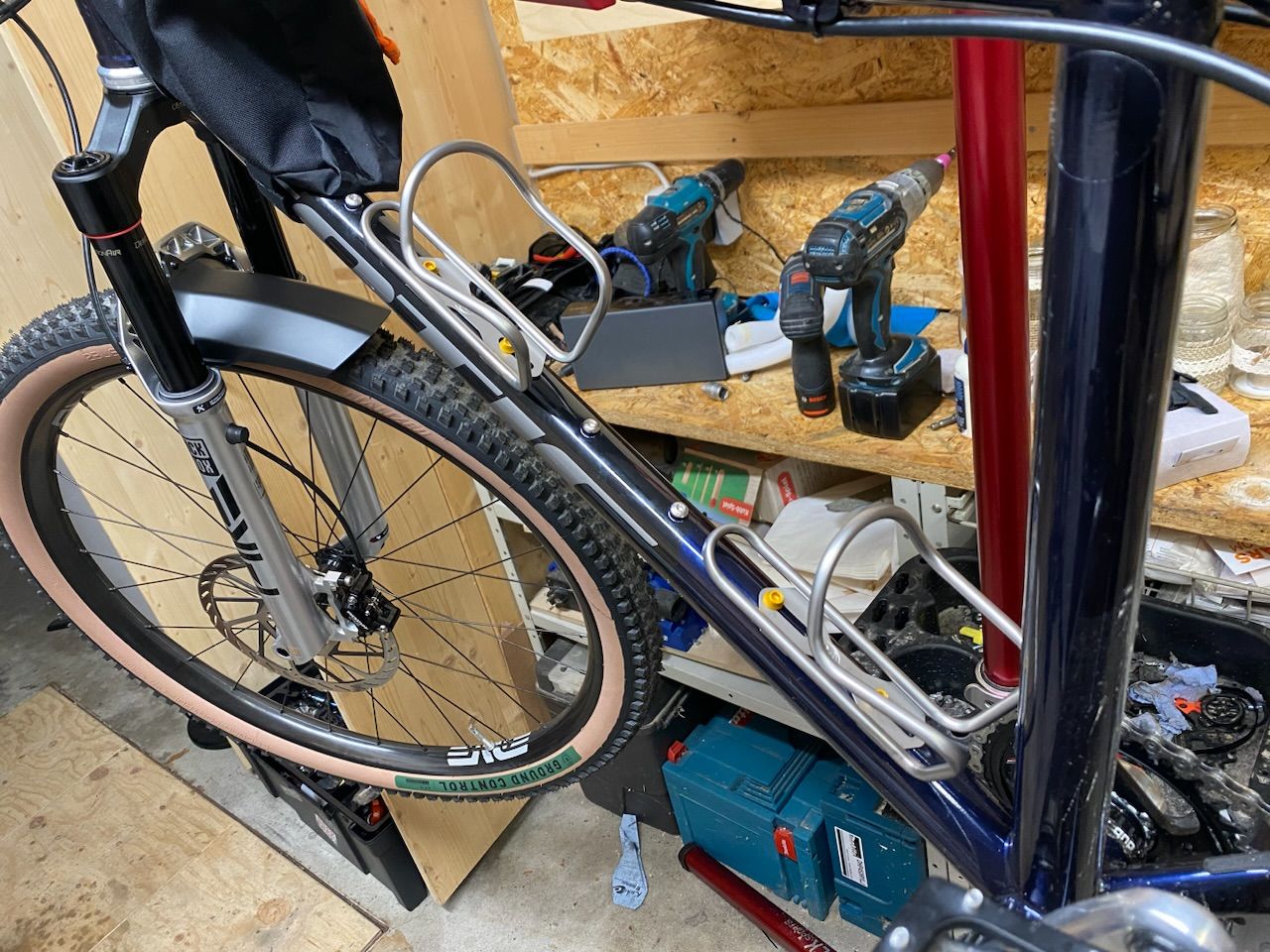Dann identisches Hardtail aufgebaut nur mit anderer Bereifung damit man auch etwas für nasse Verhältnisse direkt griffbereit hat.