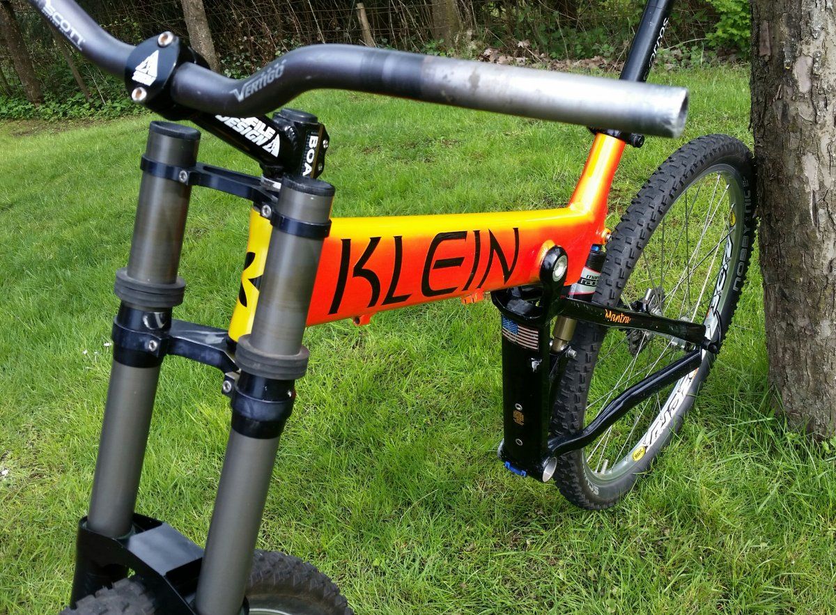 Ganz schön brutal die Höhe...:eek: Das ist ja aus Zeiten, wo 80ger Manitou drin waren...ne 63er SID könnte auch passen. Die bauen recht hoch bzw. sehen optisch nach viel mehr Federweg aus.