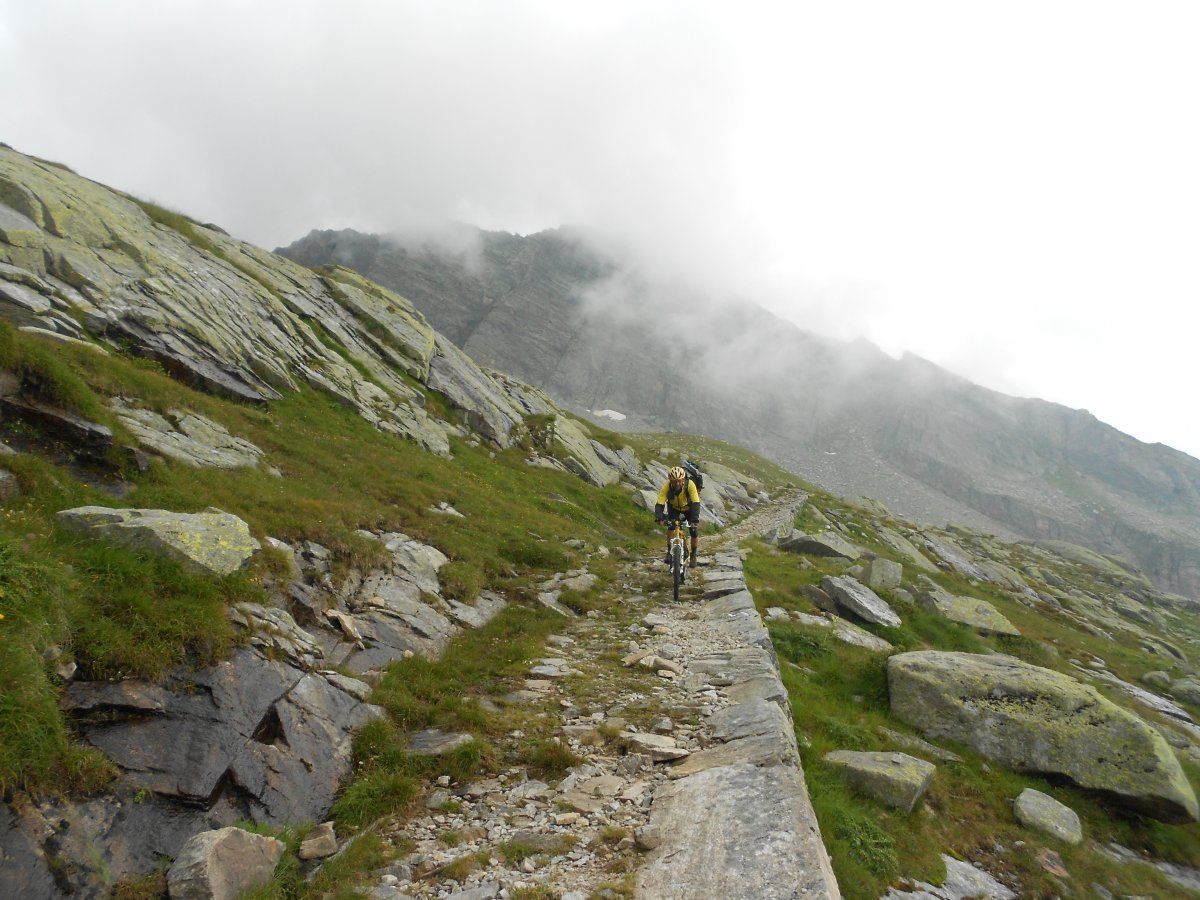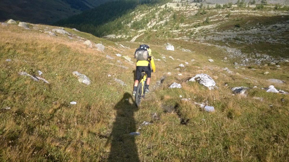 Meine Empfehlung: haRDTAIL mitnehmen wegen der vielen Tragestrecken (pso Valdobbia 1200 hm rauf und fast 1000 hm runter); denn auch bergab werden sich wohl nur absolute Spezialisten durchgehend im sattel bewegen können, zumal mit tourengepäck!
