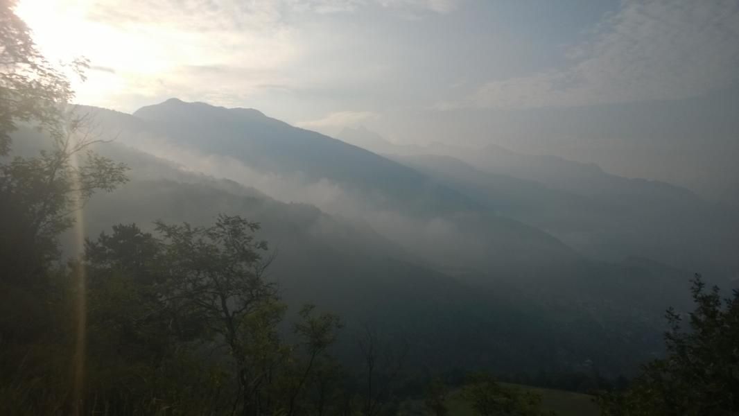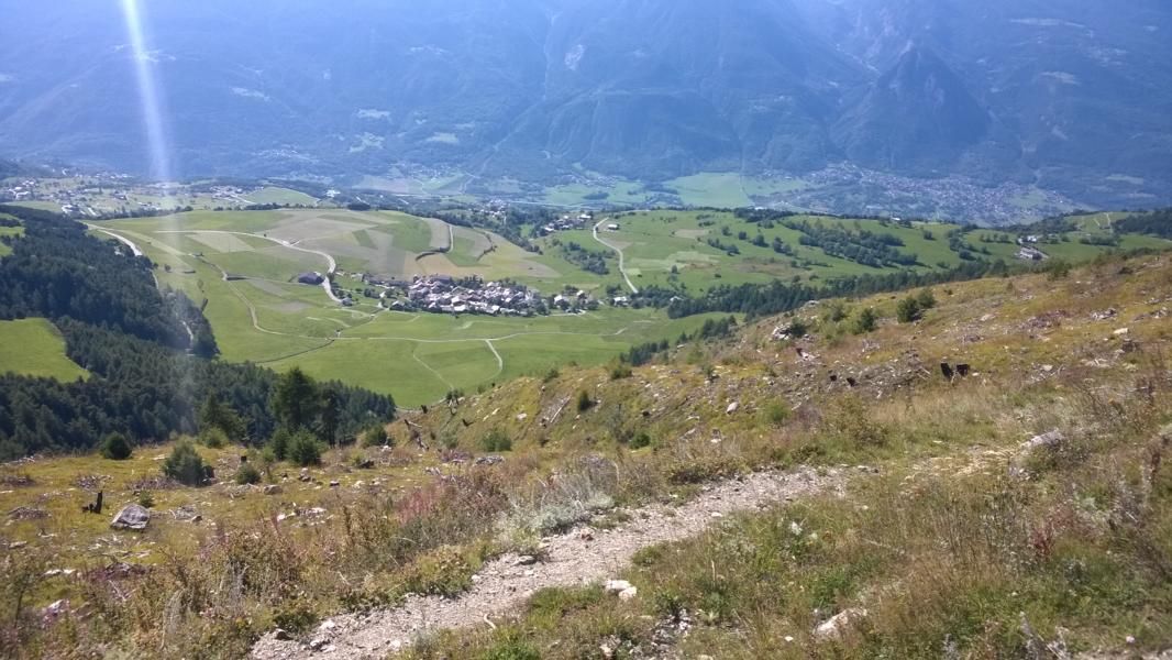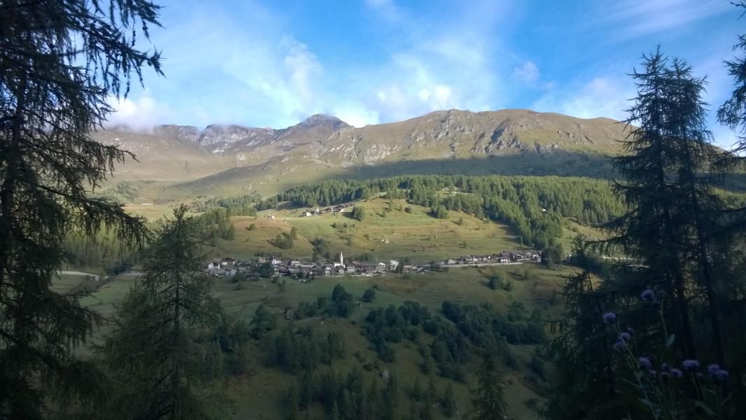 wir haben mal wieder dusel und schaffen die abfahrt durch das skigebiet AYAS ohne nass zu werden. nun wäre es zeit, mal eine kleine pause zu machen. (15 h) während wir in lignod etwas trinken regnet es gerade 1/2 stunde. bis nach champoluc ist es wieder trocken und wir haben nochmals bessere aussicht.