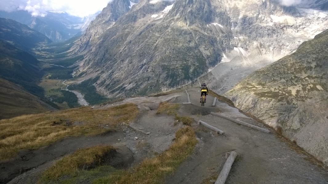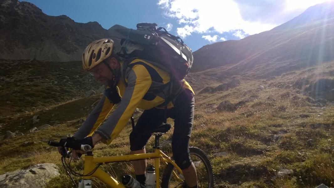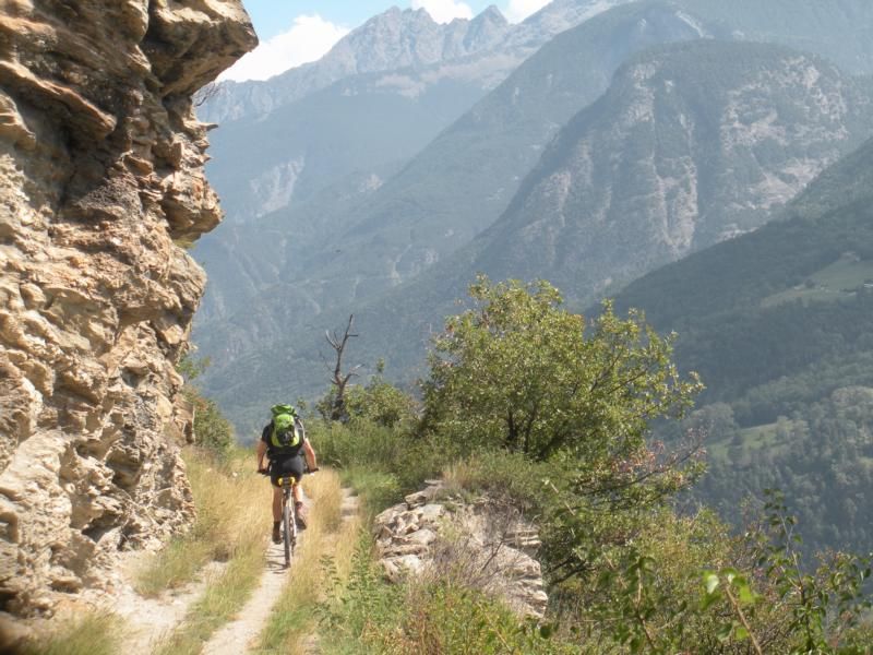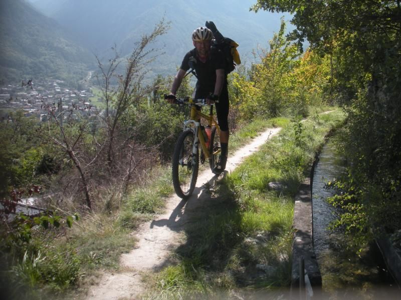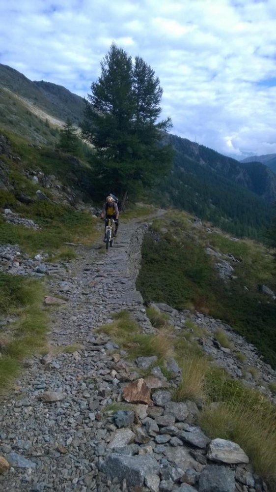 über die folgende abfahrt ca.1.400 hm hinunter nach valpelline schreibt A. Zahn, dass diese fahrtechnisch anspruchsvoll ist. immer wieder müssen wir stücke schieben. aber weiter unten wird es immer besser und macht richtig spaß.