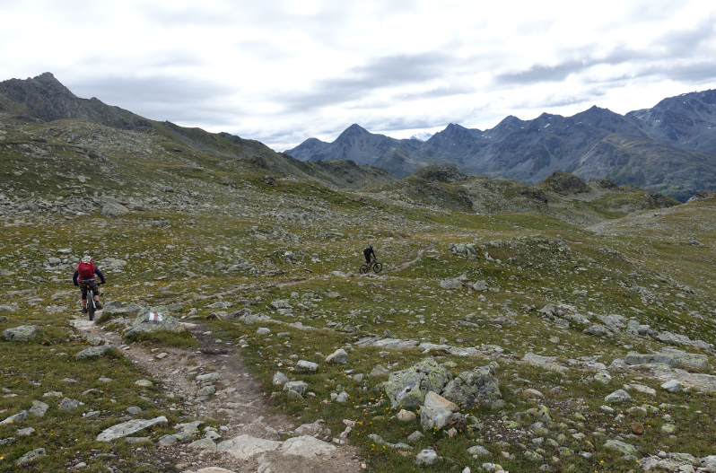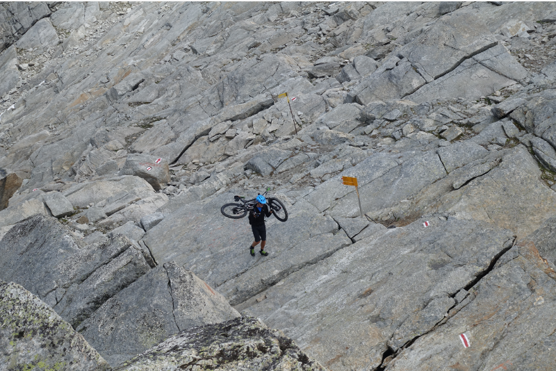 Das ist eine sehr sehr sehr gute Frage - nach den Erfahrungen/Eindrücken.... Die Übergänge waren schon der Hammer: im Prinzip jeden Tag schiebtragen Moro 600/ Thurlo 1400/Nana 200/Vessonaz 600/ Riedmatten 600/Torrent 200/ Meidpass 400/ Augstbordpass 600 und jedesmal eine Megaabfahrt zwischen 1000 und 2000 tm Singletrail (mit mehr oder weniger langen Schiebestücken) - sehr sehr einsam (in 9 Tagen 4 andere Biker getroffen) ist schon sehr eindrücklich.