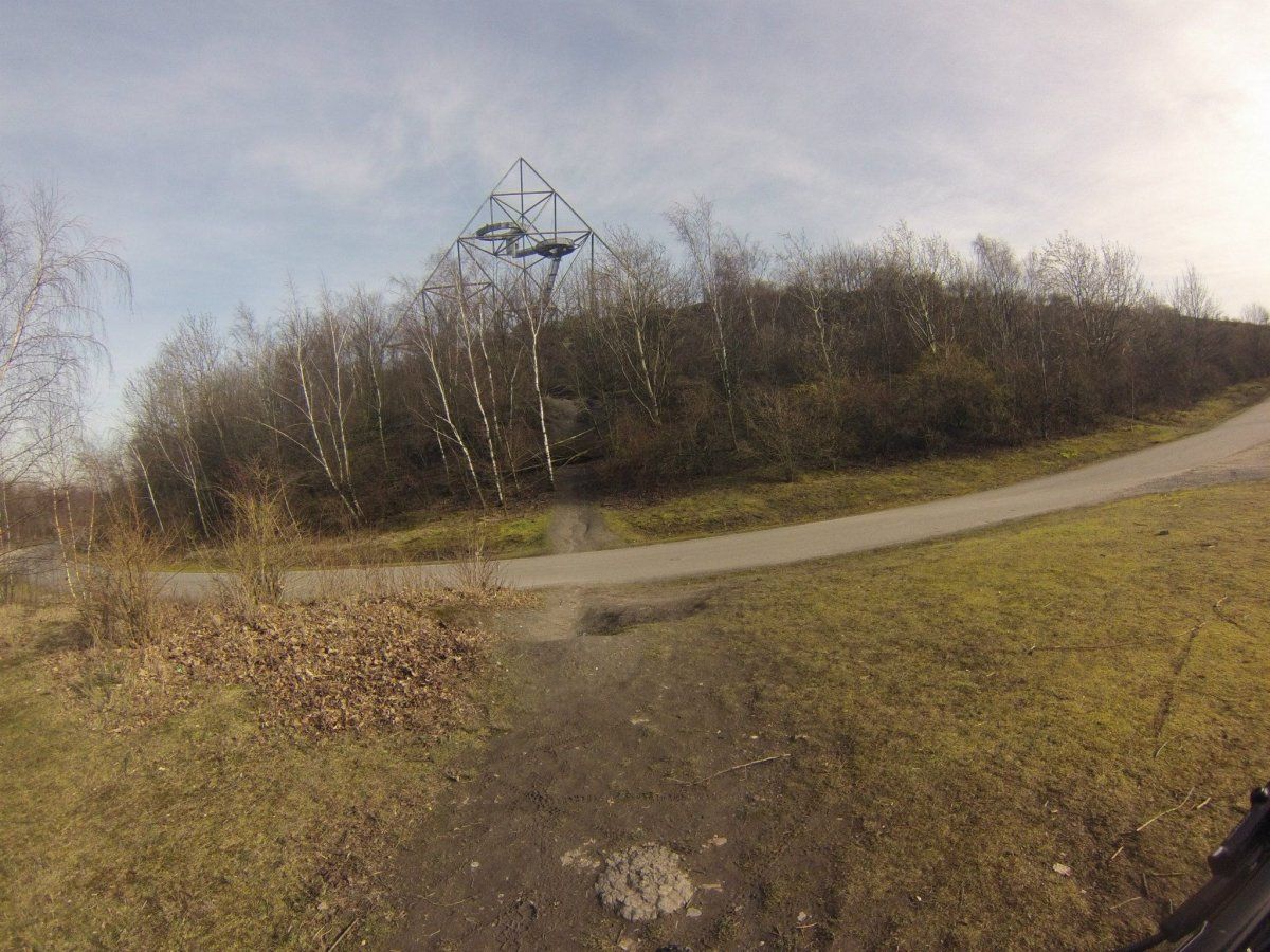... und auf der Abfahrt an der Skihalle liegen jede Menge Autoreifen mitten auf dem Trail, schön gerade als Sperre ausgelegt.