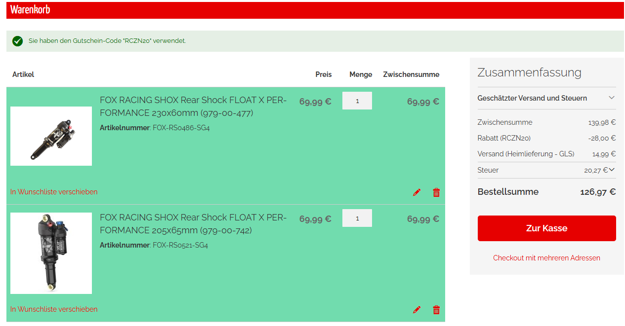 Fazit: Das Tuning hat sich nur bedingt gelohnt. Wollte ich die Zeb 3.0 behalten, dann nur mit Tuning, da die Kompression zu straff war. Den gleichen Effekt hätte ich mit einer Fox38 Grip2 allerdings deutlich günstiger erzielen können. Inkl. Rabatt kostete mich das Tuning immerhin ca. 300€.