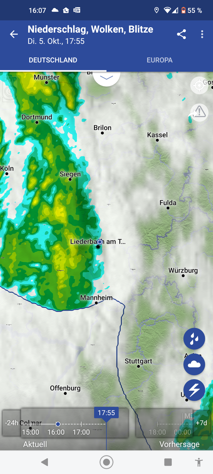 - Aktuelle Niederschlagsprognose.