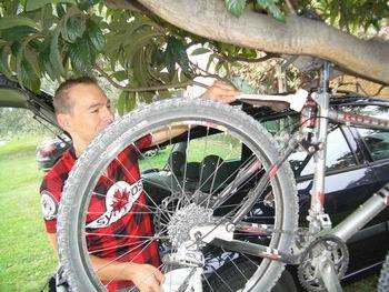 ...gerademal das Bike aus dem Kofferraum geholt und einen schönen fetten Dorn aus dem Profil gezogen.