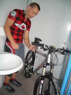 Zum Abschluss der heutigen Tour sollten unsere Schätzchen noch einmal am „Multischrauberbaum“ sich von den Strapazen des heutigen Tages erholen. Und ich sag nur: „ Junge Liebe muss etwas schönes sein!“ René ließ es sich nicht nehmen mit seiner „geilen Braut“ unter die Dusche zu verschwinden.