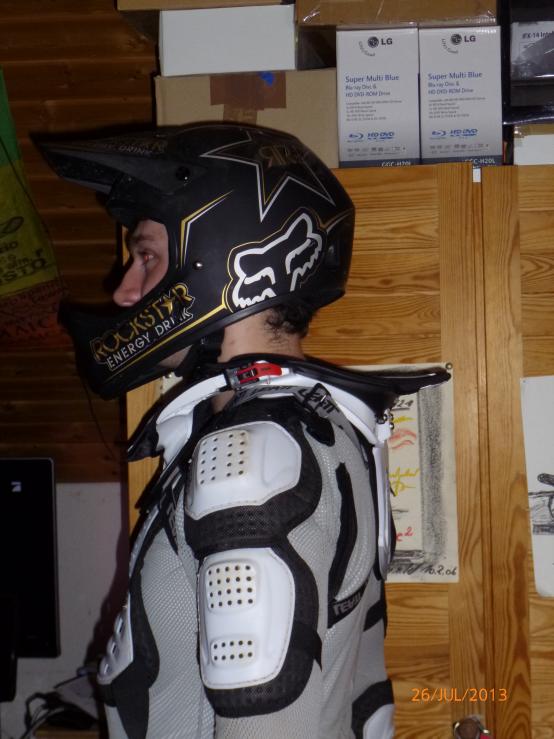 Bei der Jacke handelt es sich um eine Fox Titan, für die Bilder habe ich den Rückenpanzer weggelassen damit man den Rücken/Finne besser erkennt. Normalterweise trage ich die Kombination wie auf diesem Bild