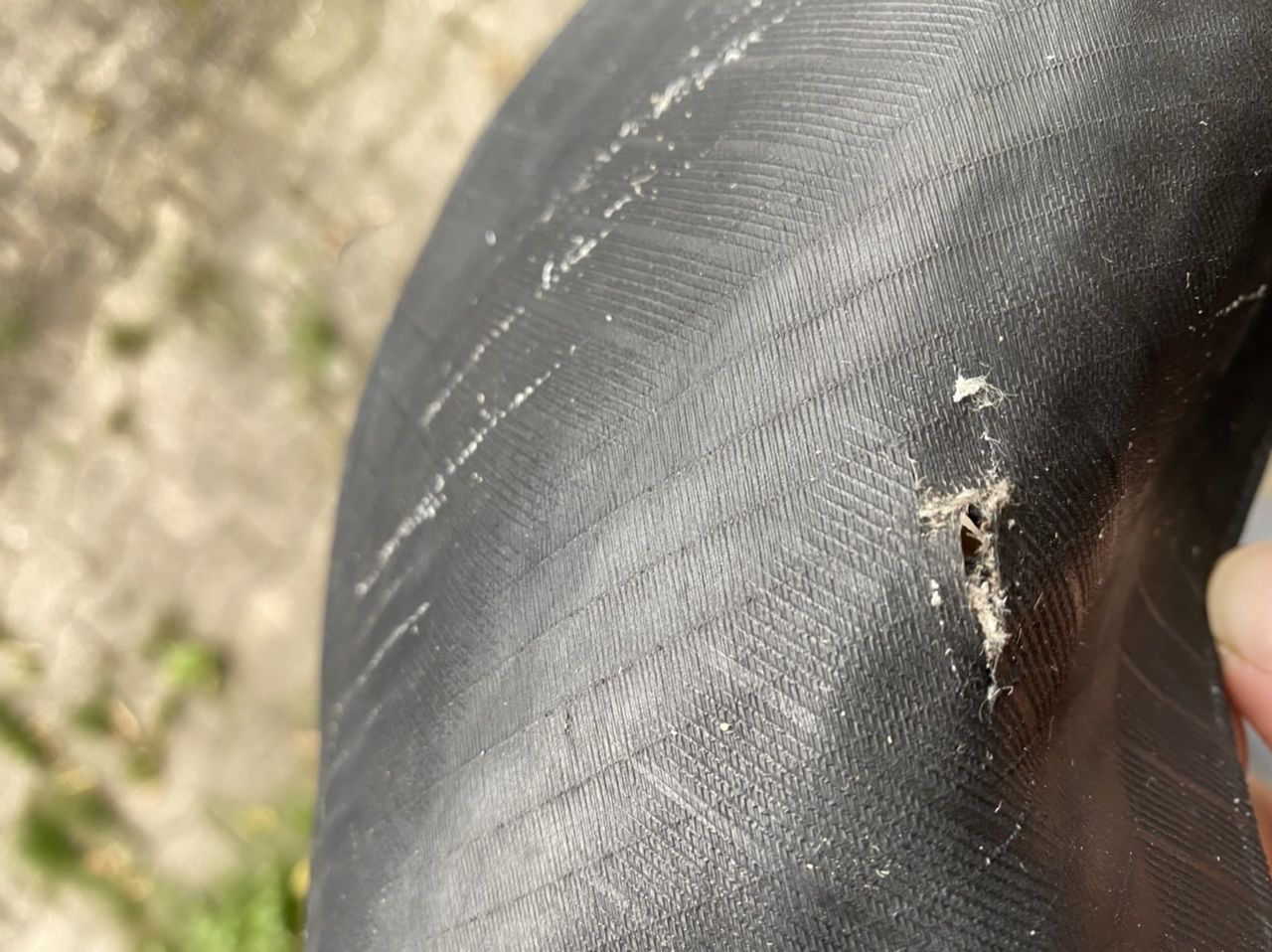 ... ach.. und bevor durch die Bilder nen falscher Eindruck entsteht.... die Durchstichfestigkeit der Speed‘s liegt auf durchaus hohem Niveau... was auch immer ich da erwischt habe, das Loch hat knapp 8mm Durchmesser und die Karkasse hat es auch direkt mit erwischt.