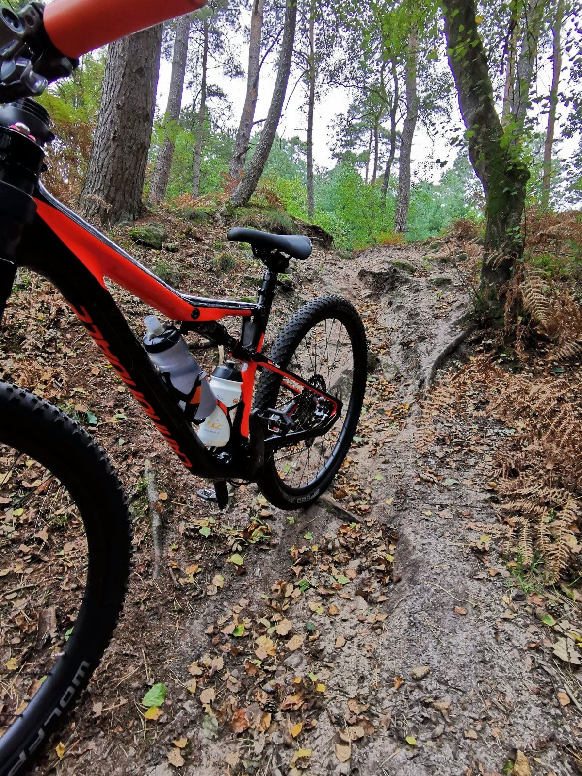 geil flowige Trails... da will Mann direkt den Rechner ausschalten und los gehtsIch fahre 28mm Maulweite. Mein Bike ist zwar eher eine CC/XC-Feile, jedoch fahre ich damit auch anspruchsvolle Trails. Daher musste eine Variostütze her. Viele Steinfelder, Absätze, Wurzeln, Sprünge. Durch Mischwald und Kiefernwald, am Hang und Steinbruch. Also von sandig bis losepack & hardpack alles dabei.
