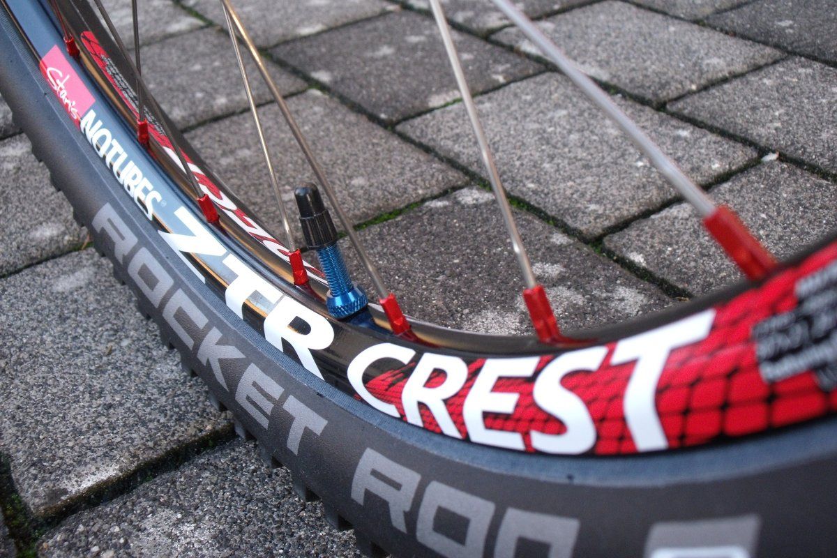 Die Laufräder bestehen aus ZTR Crest 24 Felgen ,die mit Sapim Laser und Polyax Alunippeln eingespeicht wurden und sich um einen Bitex Nabensatz drehen. Die Schwalbe Socken habe ich tubeless montiert ,was wirklich super funktioniert hat . Die sitzen wie TR-Reifen und verlieren auch absolut keine Luft:daumen::daumen::daumen:So schnell kann man 300g einsparen.