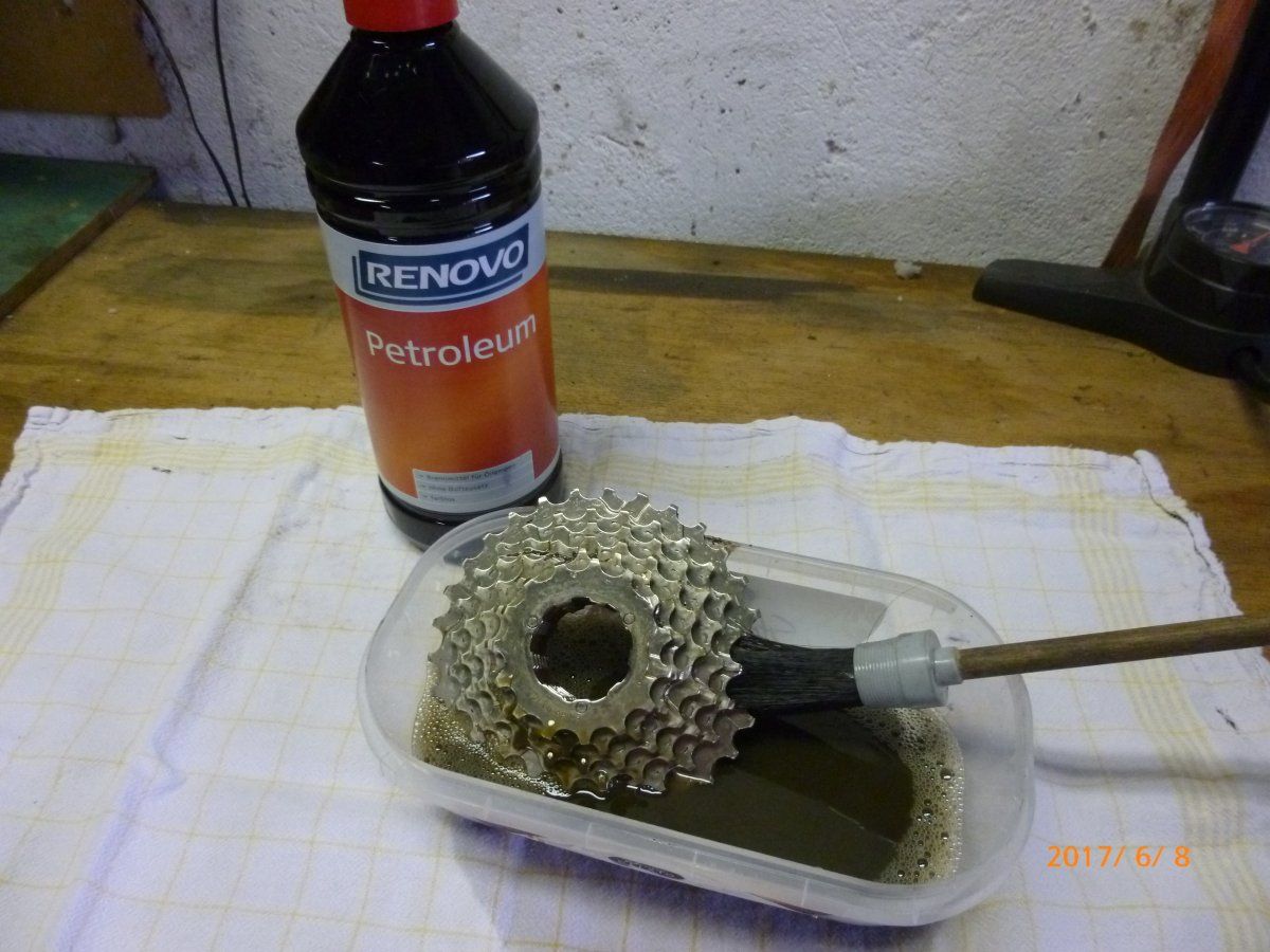 ... für die gezeigte Anwendung komplett versifftes Ritzelpaket :eek: :D hat sich bei mir folgende Behandlungsmethode bewährt: Zuerst großzügig Glasreiniger drauf und dann komplett (auch alle Zwischenräume!) mit Backofenreiniger einsprühen.