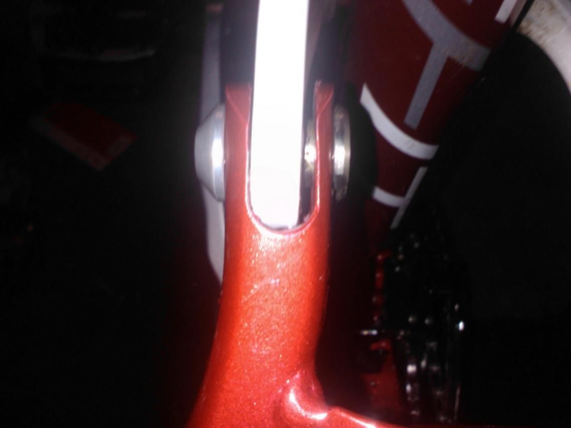 aber heute ist mir was aufgefallen, An der Schwinge ist ein Lager nicht wie das andere! Es liegt ganz nah an der Sitzstrebe