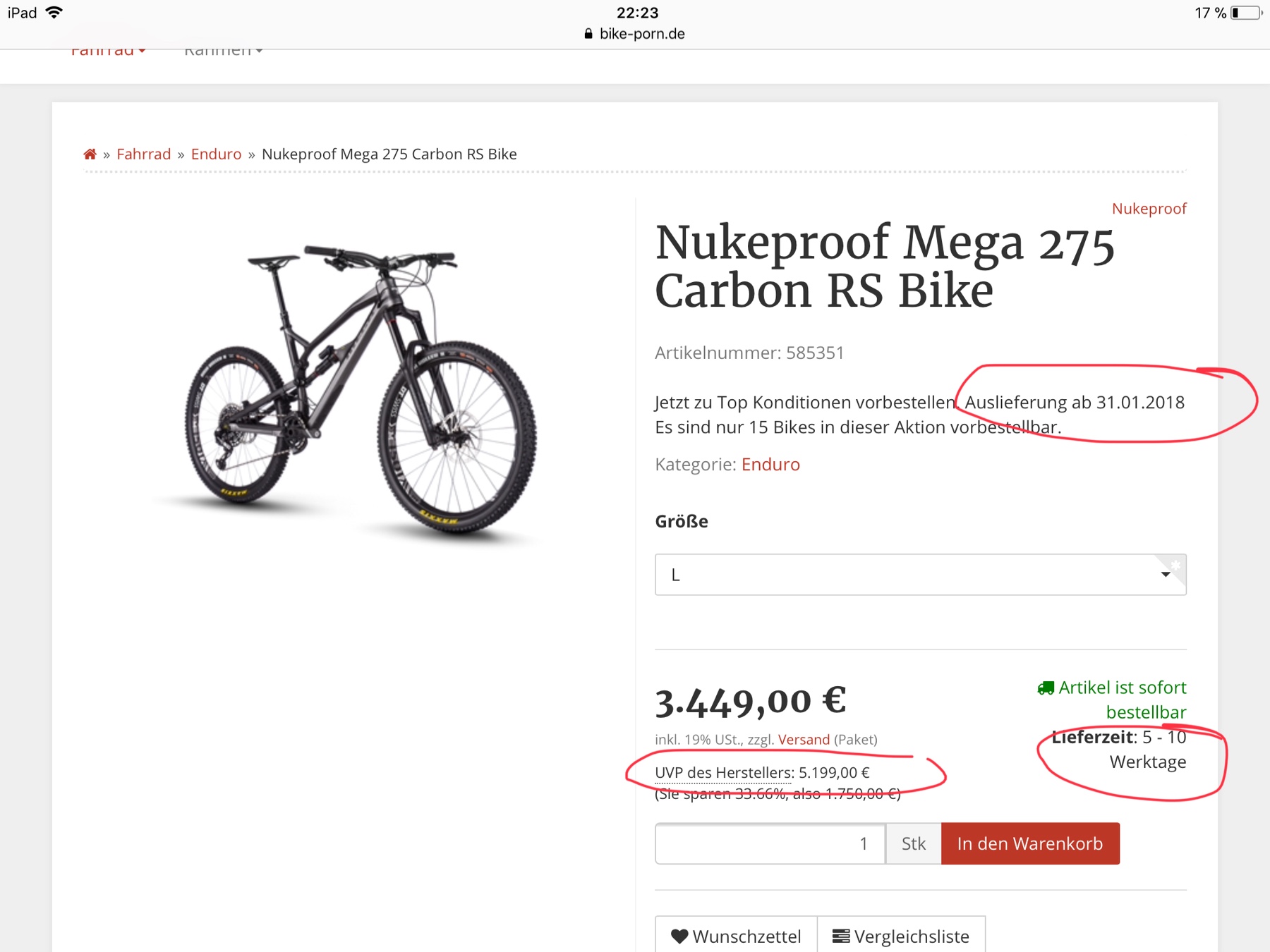 Dann doch lieber bei Mountainlove bestellen. Glaub diese Promotion Aktion von Bike-porn passt dann auch gut zur Masche, die Leute lassen sich vom günstigen Preis anlocken und bekommen nie das bestellte Rad...