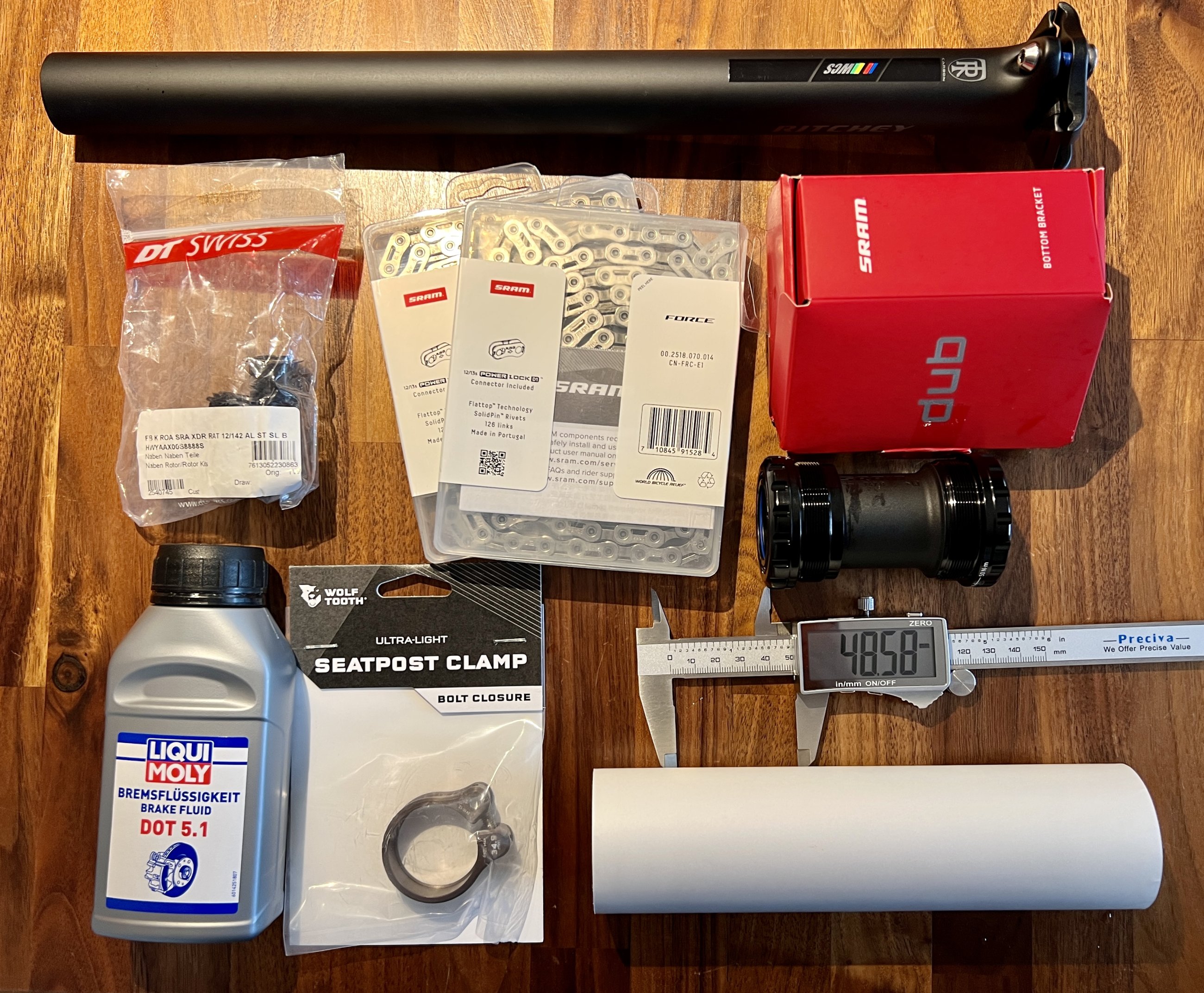 Meine Idee ist, ein eher zeitloses Bike zu bauen, das aber hinsichtlich der Technik auf dem aktuellen Stand ist. Ein gewisser Widerspruch oder vielleicht eine Fusion. Mal sehen. SRAM Force AXS XPLR 1x13 ist damit gesetzt.