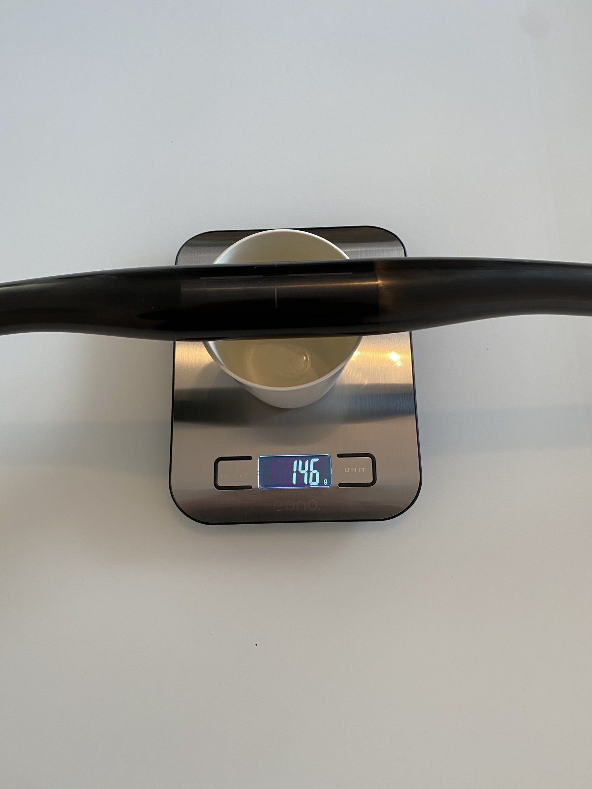 Von Orbea OC 1, Alu 341g auf den Procraft HB3 Flat 31,8mm, 9° grau matt 760mm, 196g. Frau Alma wollte es… also.. Procraft weg und Beast Carbon UD, 31.8, 780mm mit 146g her.