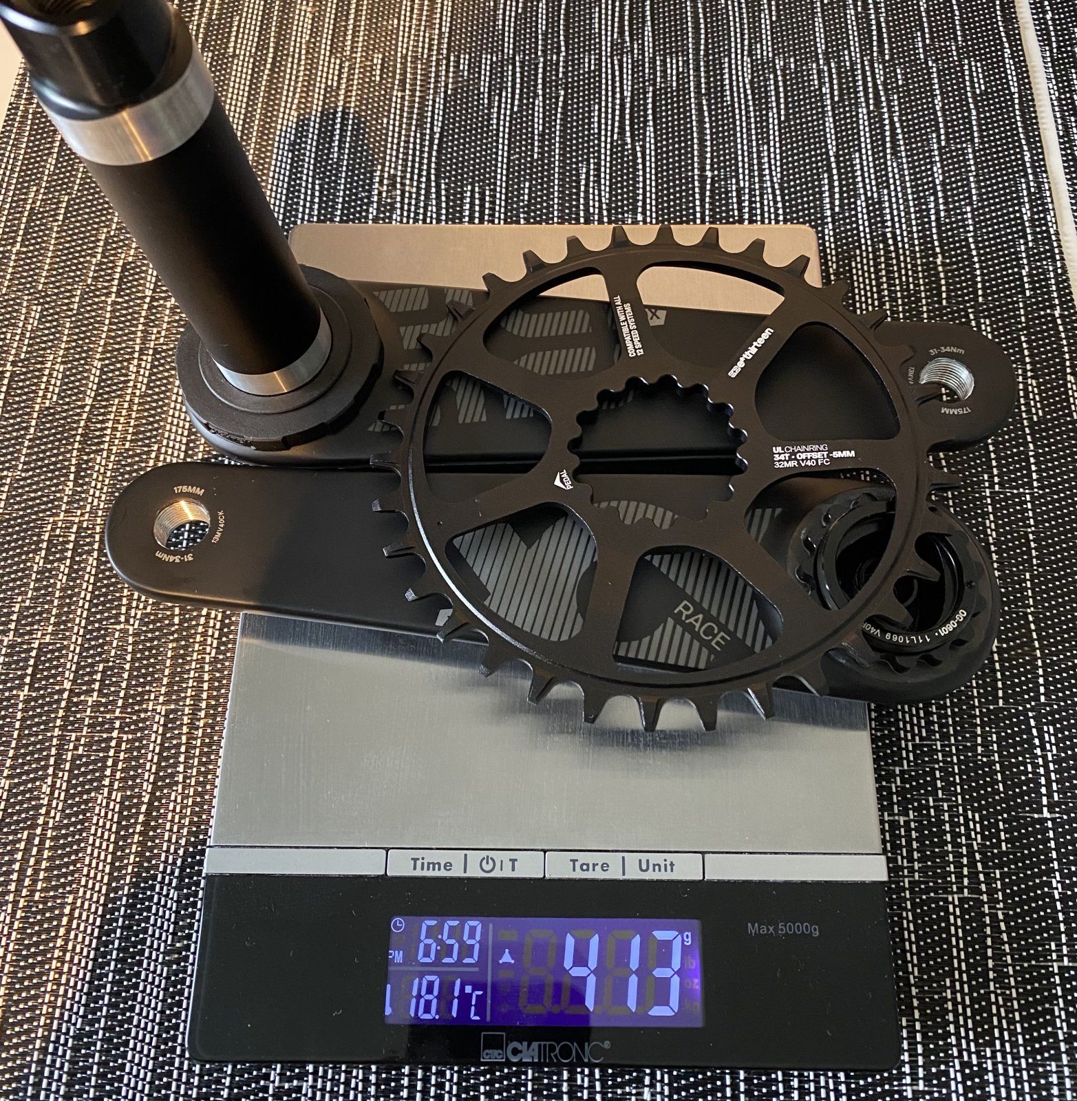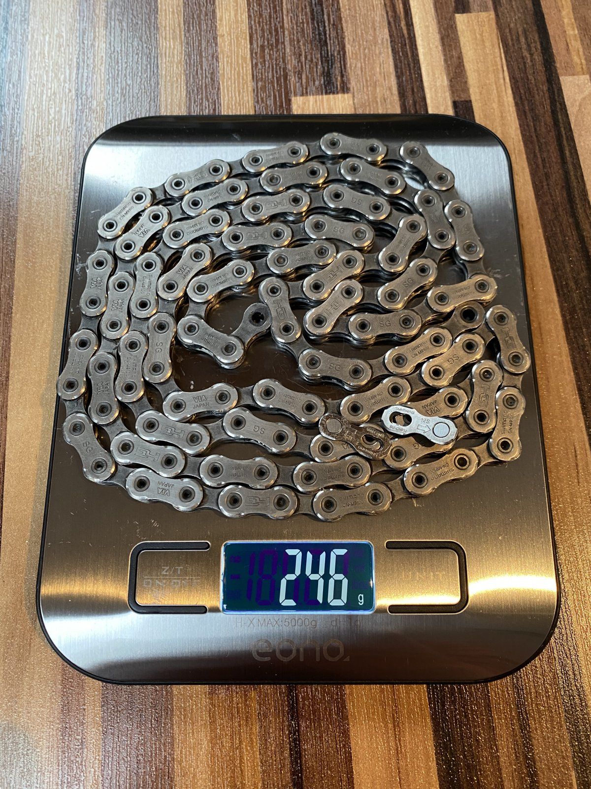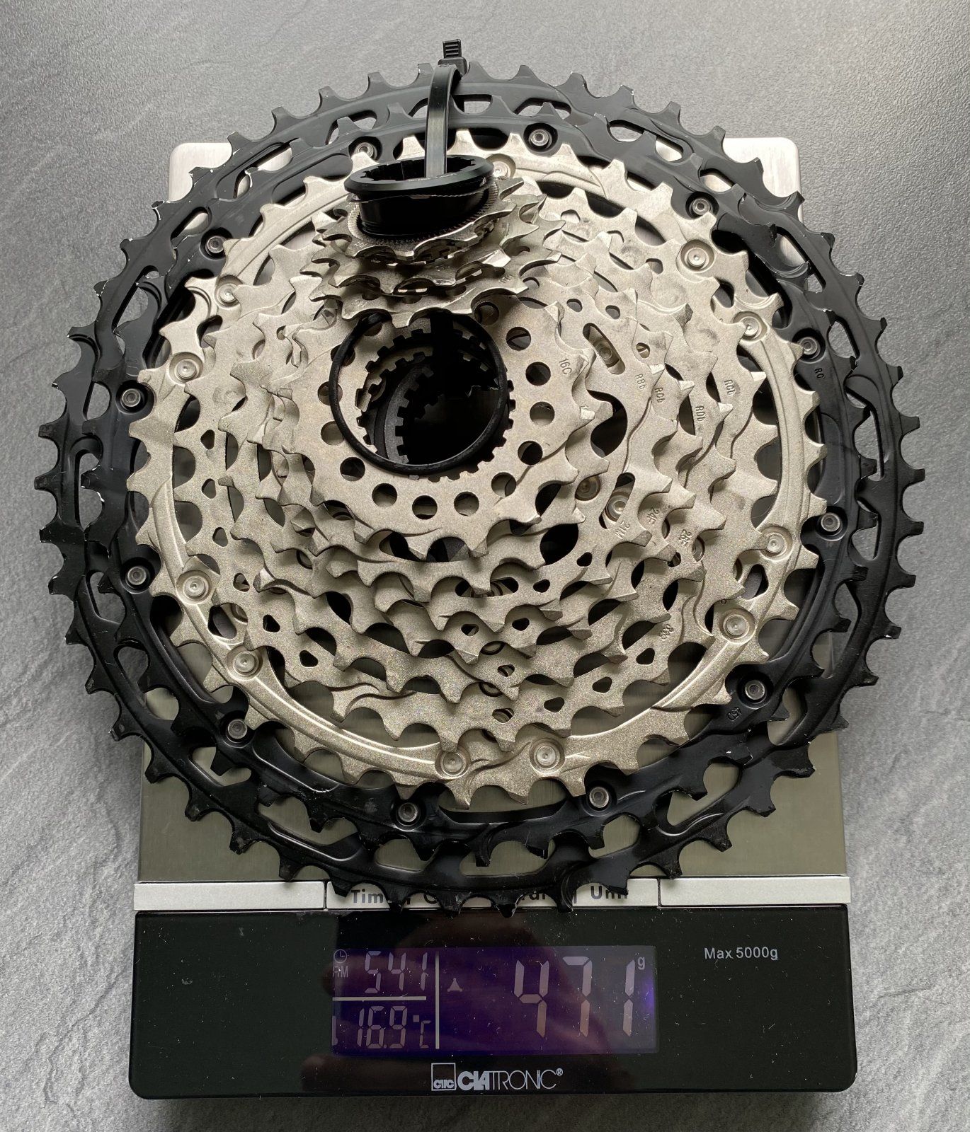 Hallo, das Schaltwerk ist ein RD-M9100-GS (also kurzer Käfig für 10-45Z Kassette) mit 2x Gabaruk 14Z. Die wiegen 21g, damit aber soviel wie die Shimano Schaltröllchen auch. Weiter ist da nichts dran gemacht. Gewicht ist somit eigentlich normal. Viel Tuningzubehör gibt’s da auch net für… wer nen Tipp hat… her damit.