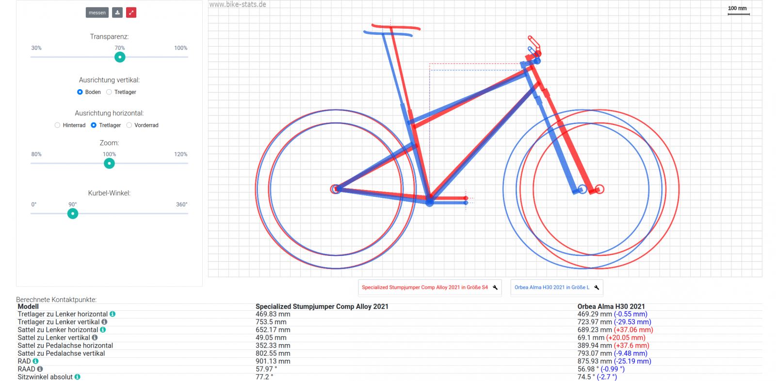 alles klar , danke schau ich mir an - ein Bild von Chrisbox Rad wäre trotzdem hilfreichWas ich immer wieder gerne einwerfe: Guck Dir mal bike-stats.de an! Dort kannst Du beide Größen gegenüberstellen und auch Vorbauten, Lenker und Sattel-/Sitzhöhen individuell konfigurieren und siehst direkt die Unterschiede. Wenn Du ein bereits vorhandenes Rad einpflegst, hast Du auch einen guten Vergleich zur bisherigen Sitzposition. Und nicht vergessen, dass der SAG nochmal zu (etwas) mehr Sattelüberhöhung führt.