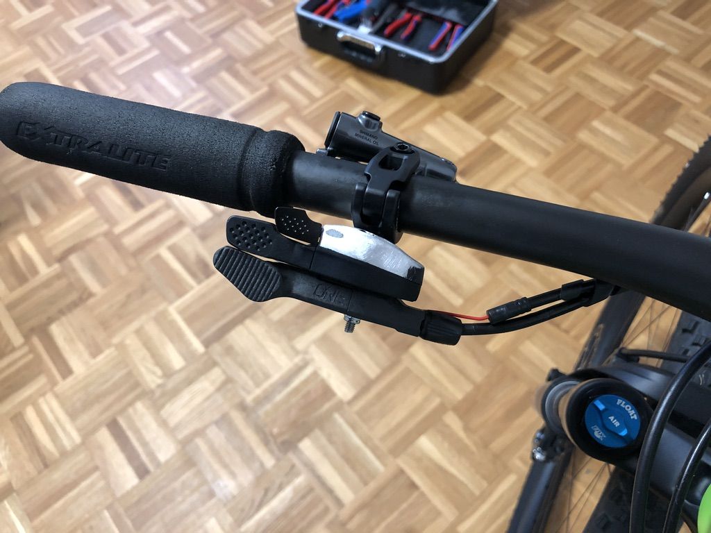 So, nun ist es endlich soweit und mein "Eigenbau 3-in-1-Remote-Hebel" ist montiert und hat sich auch schon in zwei Ausfahrten beweisen müssen (u. a. ein kleiner 56 km Marathon heute Vormittag mit drei Abfahrtspokalen, darunter ein KOM :)):
