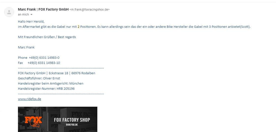 Wo kann ich das denn herausfinden?Aber bei den aktuellen ist es nicht sicher. Aber über den 4 stelligen Code an der Gabel und am Dämpfer kann man es rausfinden.