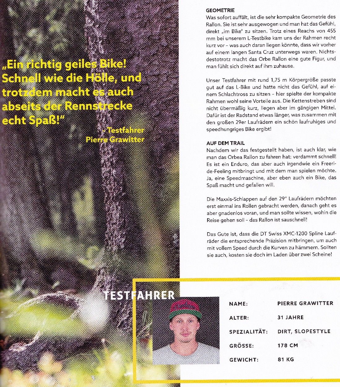 Hatte heute die aktuelle bike Zeitschrift in der Hand. Da würde das Rallon auch getestet.