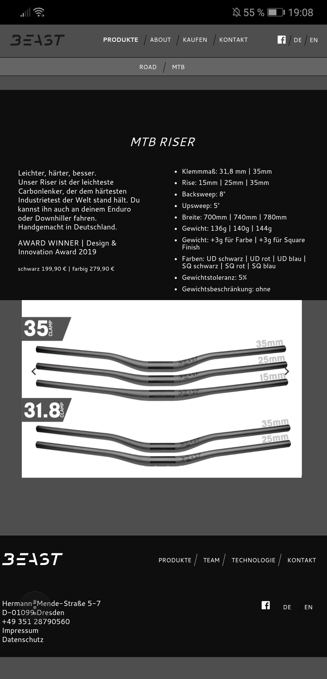Lenker 35mm von Beast Components sind jetzt vorgestellt worden. Nur bis 780mm Breite, für mich schmalen Hans aber ok.