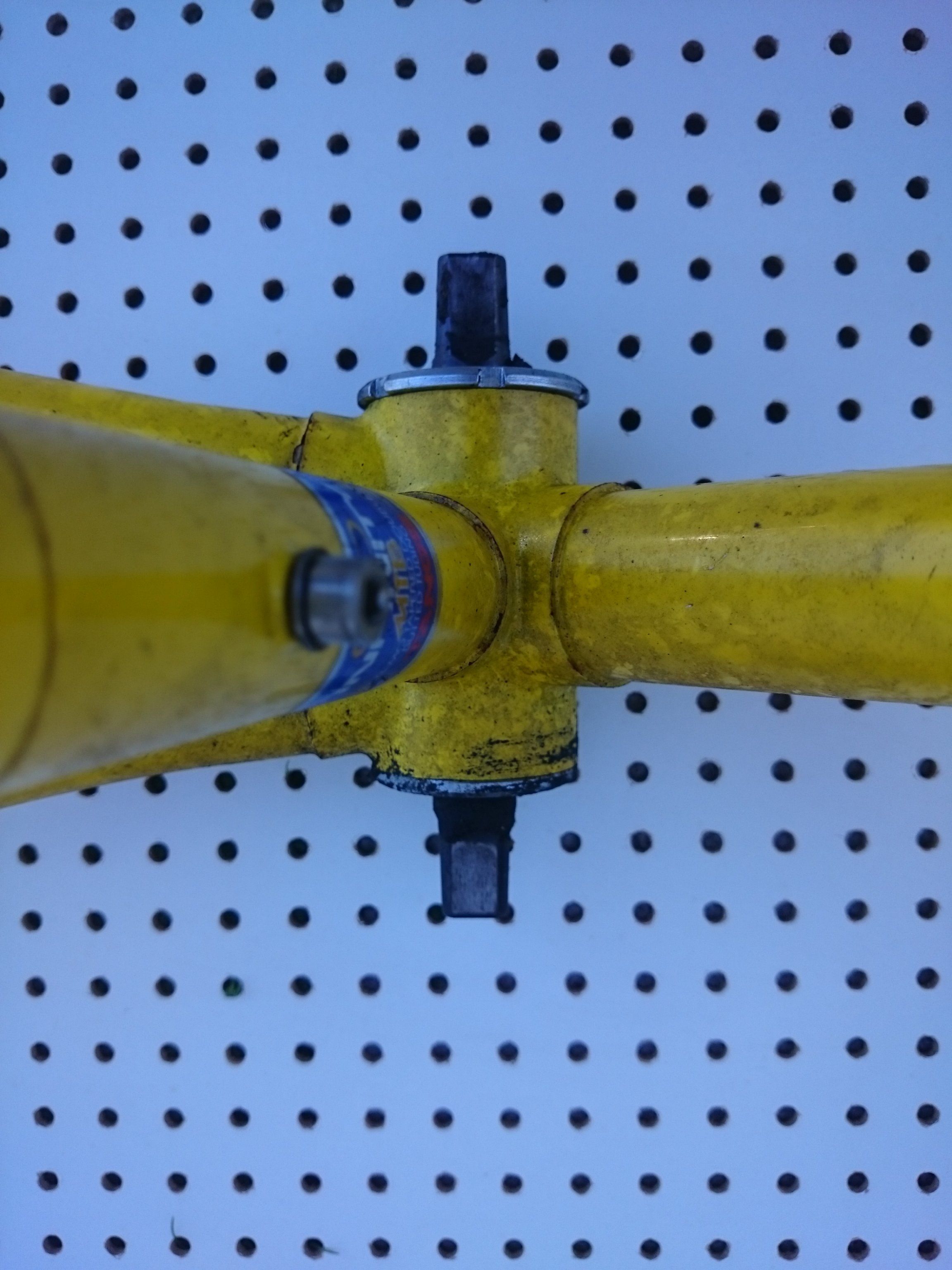 Keine Risse, keine Beulen, nicht verzogen. Rost nur oberflächlich. Nehme an, es stand längere Zeit draußen, daher oberflächlich nicht ganz so toll. Sitzrohr 51cm (c-t), Oberrohr 56cm (c-c).