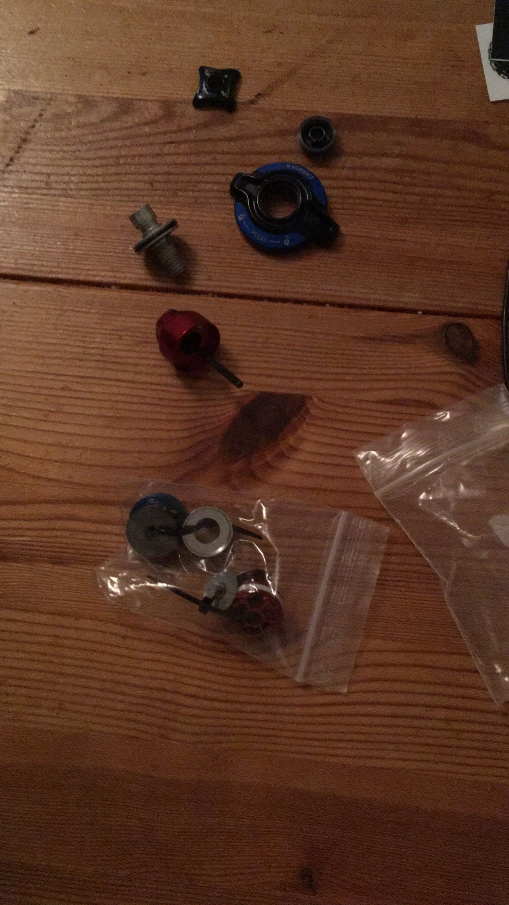 Danach hab ich dann auf den Pike-Einsteller umgebaut, der hat Klicks und ist mit einer Madenschraube gesichert. Dafür muss man aber die Sechskantstifte beider Einsteller rauskriegen, das ging bei mir nur mit Hitze und Gewalt.
