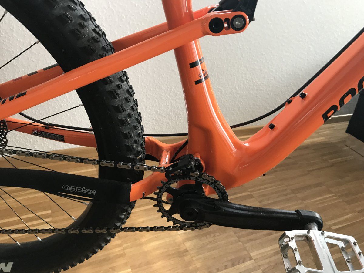 Denn in den vergangenen Tagen und Wochen habe ich den Fuhrpark deutlich reduziert: Banshee Paradox und 2SoulsCycles SlimJim (beides 29er Hardteils, einmal Alu einmal Stahl, jeweils mit 140mm Gabel), verkauft und Mondraker Crafty R+ nach Crash (Delle im Unterrohr, jedoch nicht relevant für die Stabilität) ausgeschlachtet.