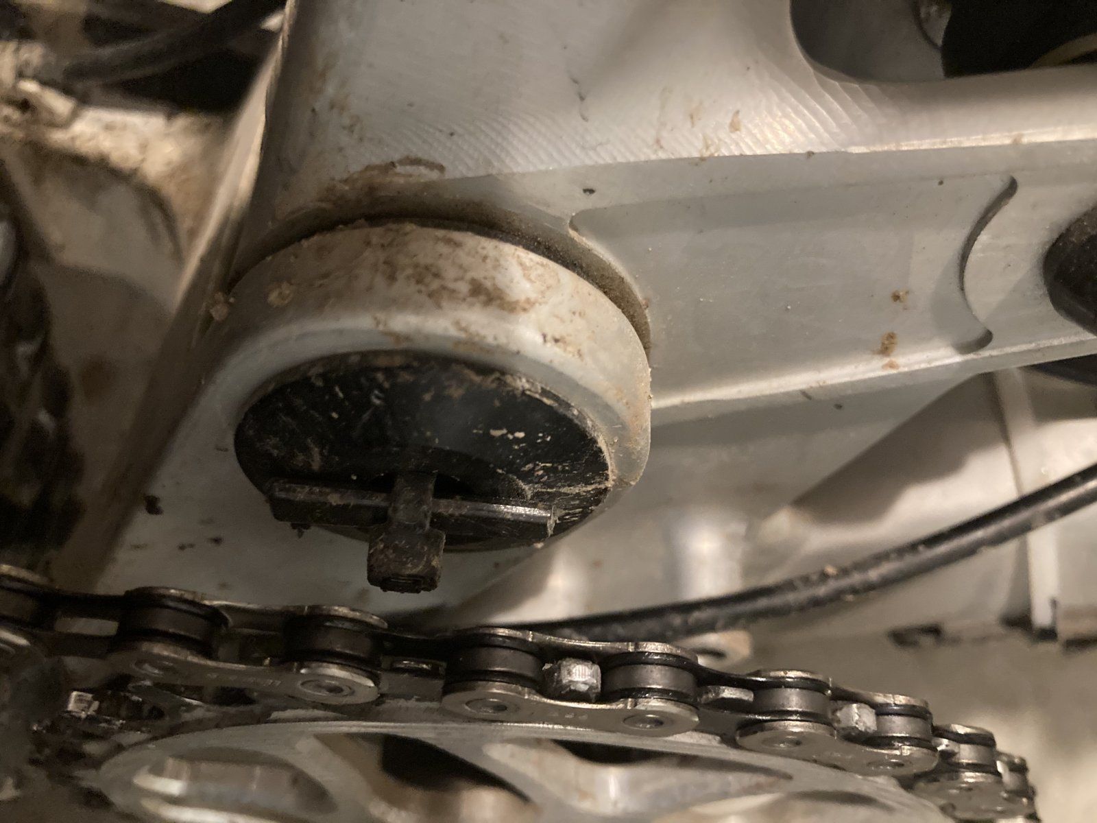 Hmm bissle SlapperTape drunter und evtl an der Kettenführung mit nem Kabelbinder fest machen?