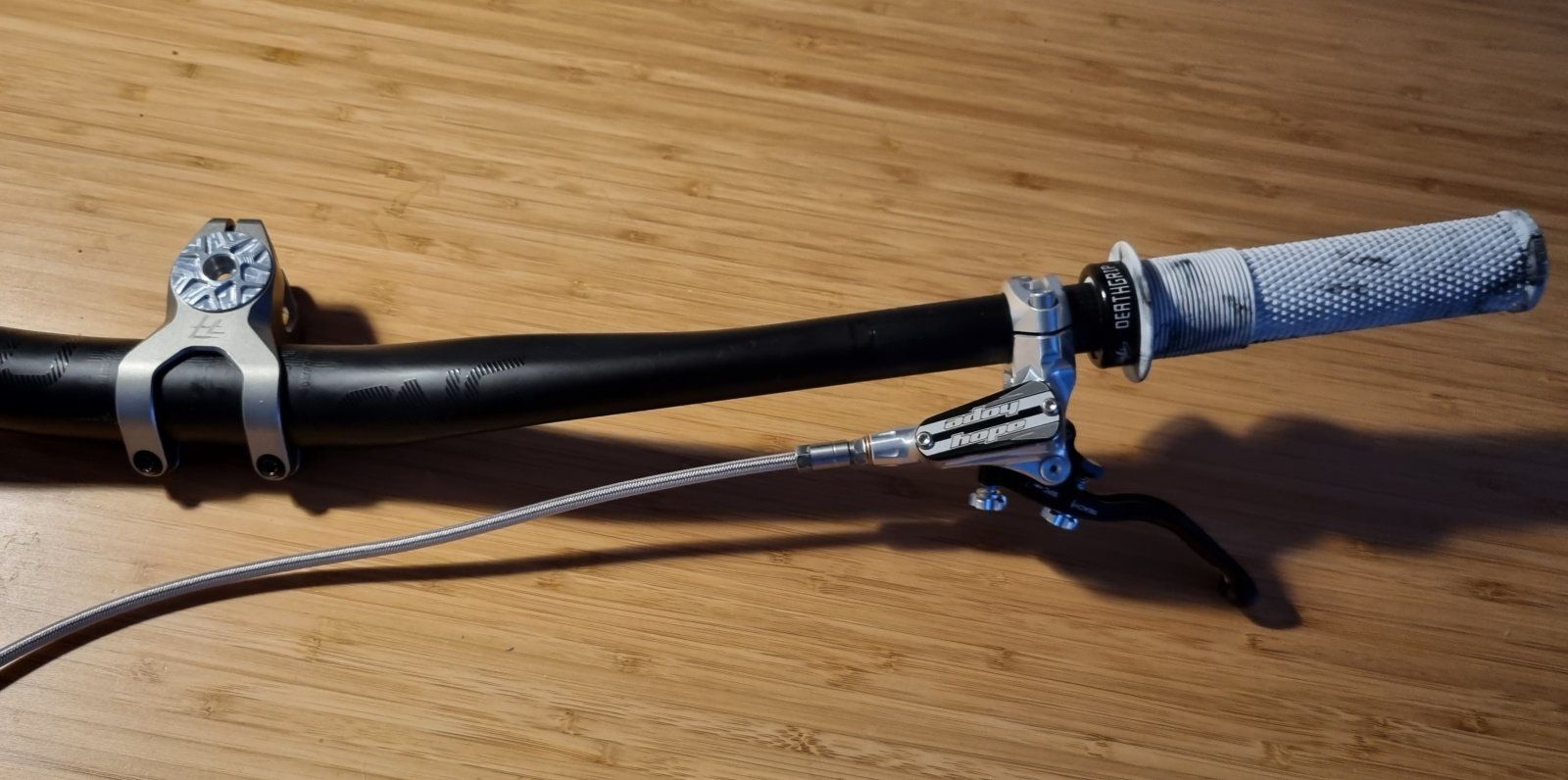 Ich hatte wie üblich zuhause Luftdruck usw. gecheckt, kurze Probefahrt vorm Haus gemacht und dann das einwandfrei fahrbereite Bike ins Auto gestellt. Als ich dann im Wallis auf >2000 m.ü.m das Bike vom Sessellift nehme, aufsitze und in den weiteren Uphill starte, fällt mir auf den ersten Metern sogleich ein bislang unbekanntes Knacken und Flexen am Lenker auf Ich frag mich, was das wohl sein mag, schaue den Lenkerbereich an und... fahre fast 1500 Hm vorsichtig rollend auf einer asphaltierten Strasse ins Tal runter. Das war def. anders geplant. Ihr könnt euch meinen Frust vorstellen. Ich hab mich dann gefragt, warum überhaupt ich an ein Madonna mit >4 kg Rahmengewicht einen derart leichten und filigranen Vorbau ranschraube. Und habe kein rationales Argument gefunden...