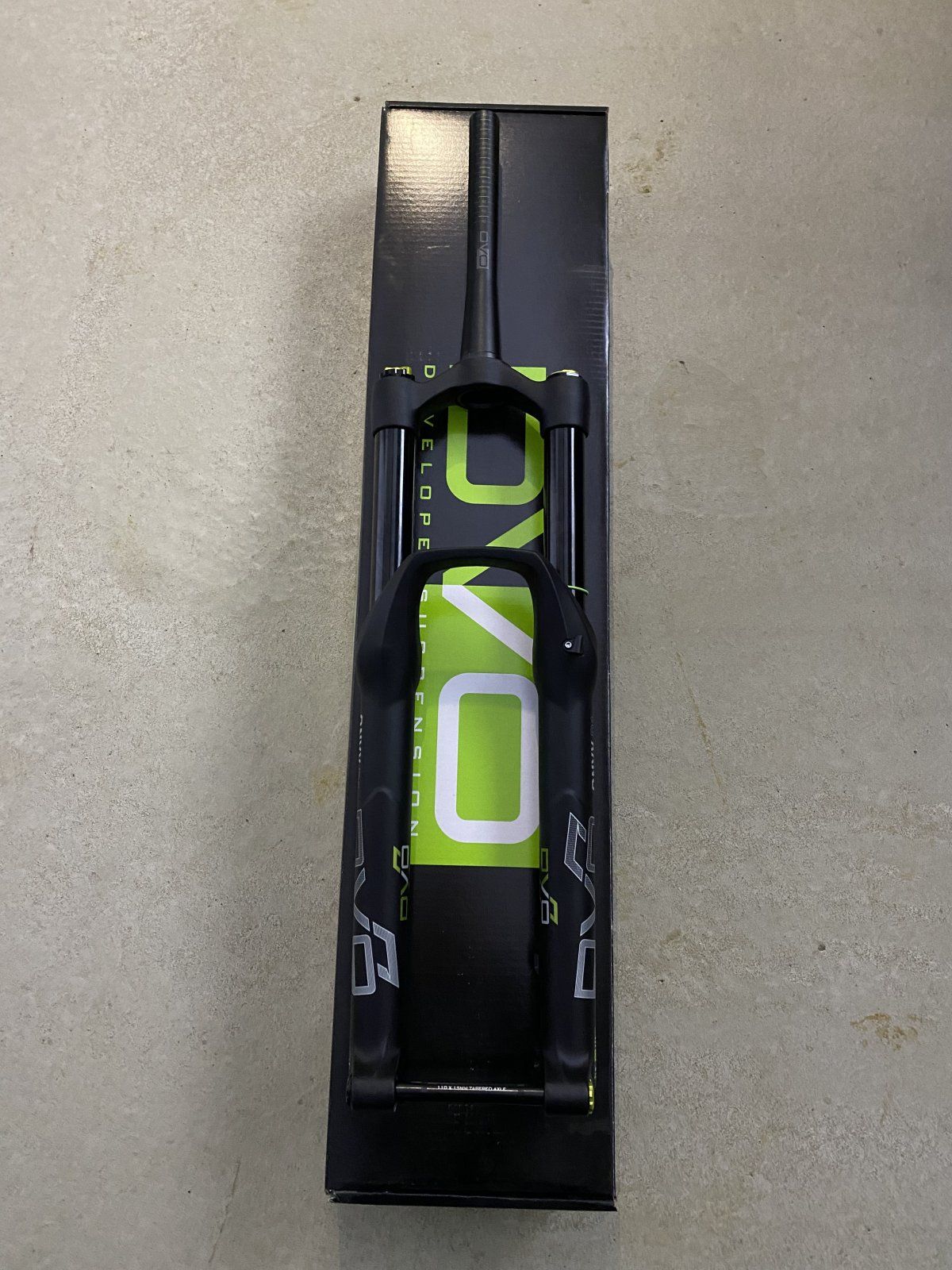 Da ich bei der MRP Ribbon den Schaft hätte tauschen lassen müssen weil er zu kurz ist und ich ohnehin ne steifere Gabel wollte, ist mir eine DVO Onyx über den Weg gelaufen.