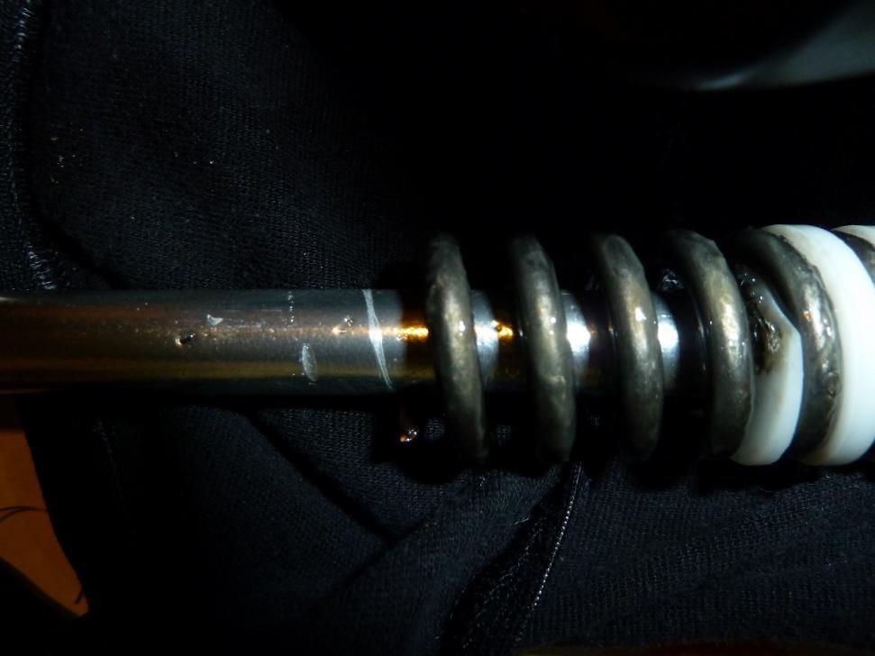 Leider musst ich feststellen, dass die Kolbenstange auf der Federseite von der Feder selbst im oberen Teil sehr tief eingekerbt wurde.